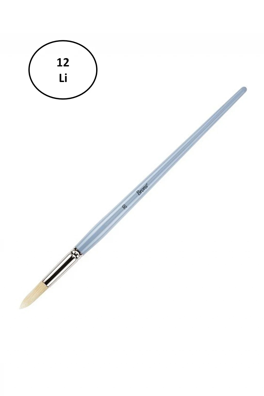 Brons Yağlı Boya Ve Akrilik Fırçası Beyaz Kıl Uzun Sap Yuvarlak Uç Seri 123 No 20 12'li
