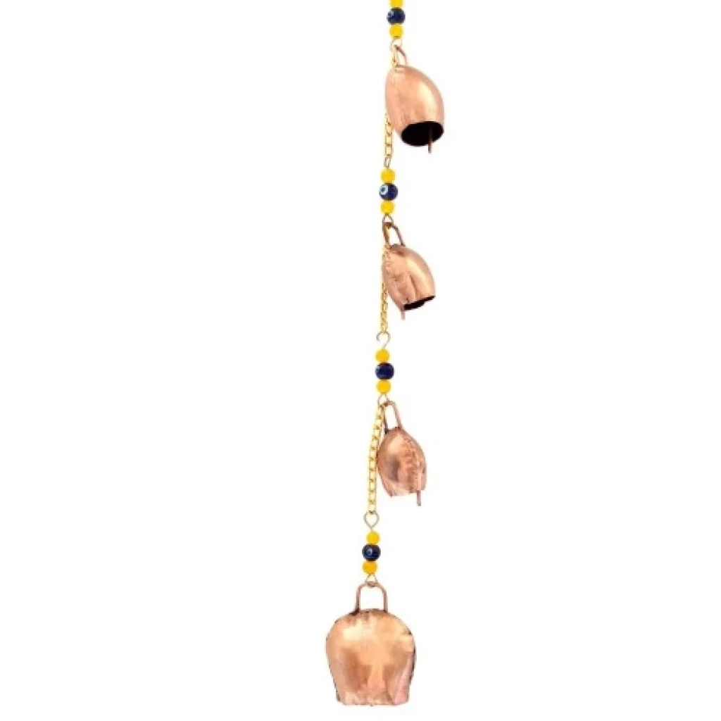 Bronz renk rüzgar çanı rengarenk boncuklarla süslenmiştir. Ürünümüz 51 santimetre uzunluğundadır.