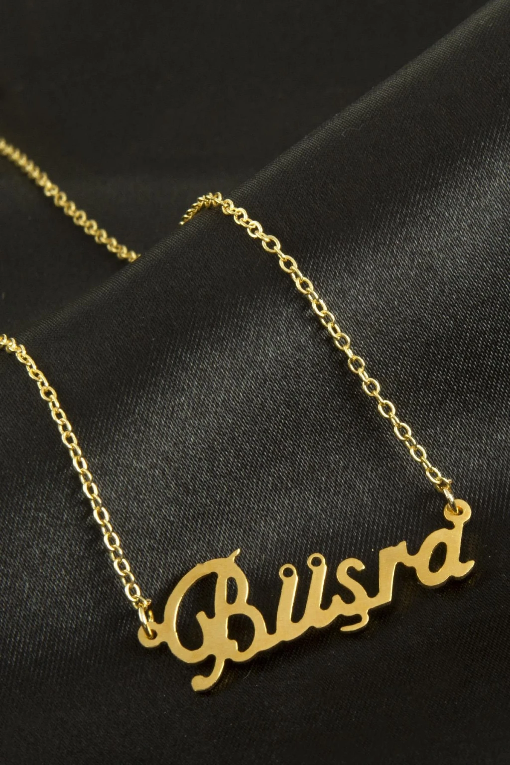 Büşra isimli kolye. İsimli kolye pirinç madeninden ve altın kaplamalıdır. Kişiye özel üretilmektedir.Yazdırmak istediğiniz ismi bize mesaj olarak iletmeniz gerekmektedir. Kullanıma bağlı olarak uzun süre kullanıma uygundur. Ürün malzemesi 1.sınıf kalitededir. Ürün ve zinciri sarı renktedir. Ürün zincir boyu 45 cm ve ürün üzerindeki isimler yaklaşık 3 cmdir. İsim boyları ürün ismine göre degişiklik göstermektedir.