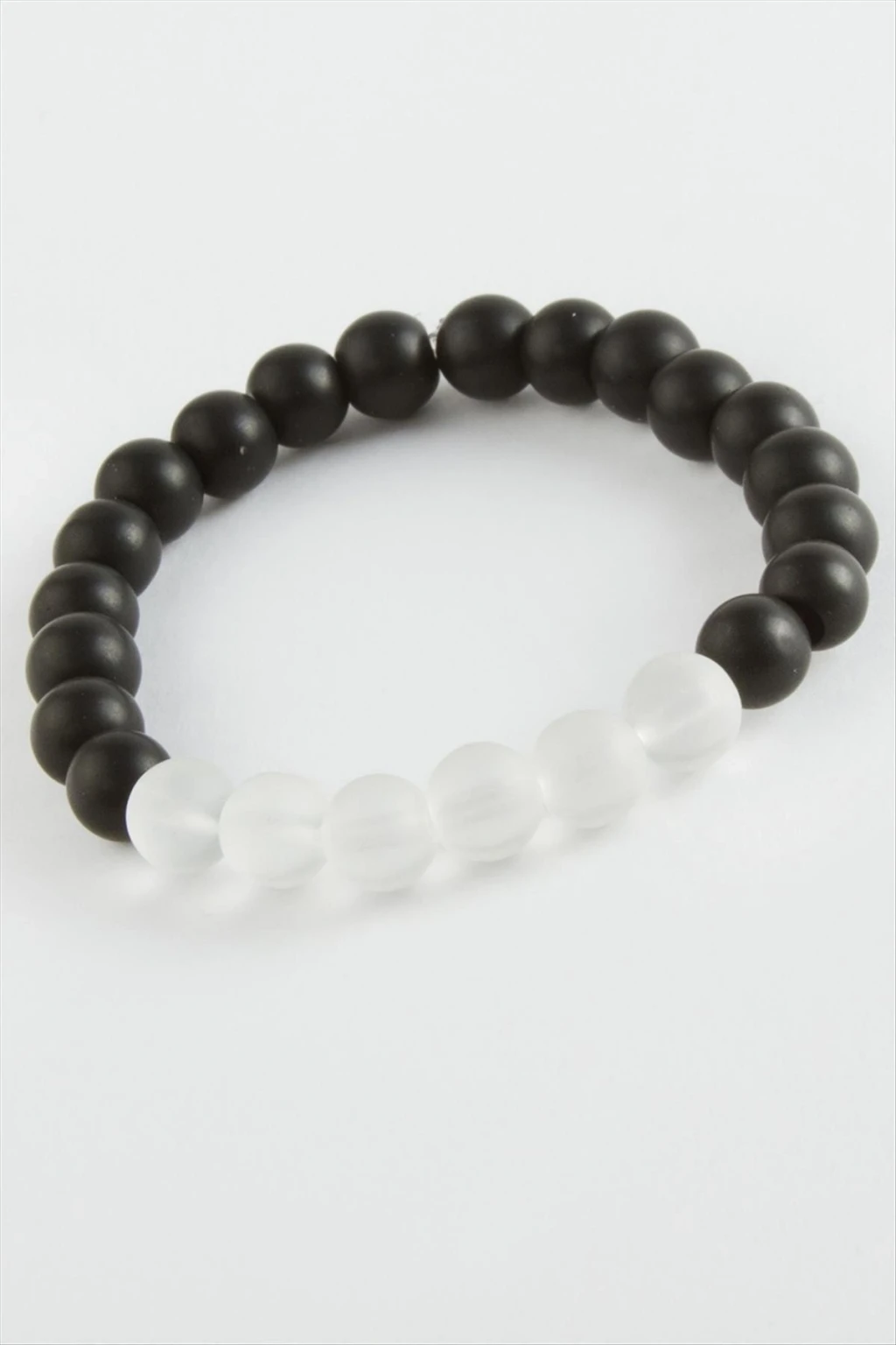 Bileklik: Ürün malzemesi onix ve buzlu kuvars doğaltaşından imal edilmiştir. Misina üzerine dizilmiştir. misina esneme özelliği bulunmaktadır.
