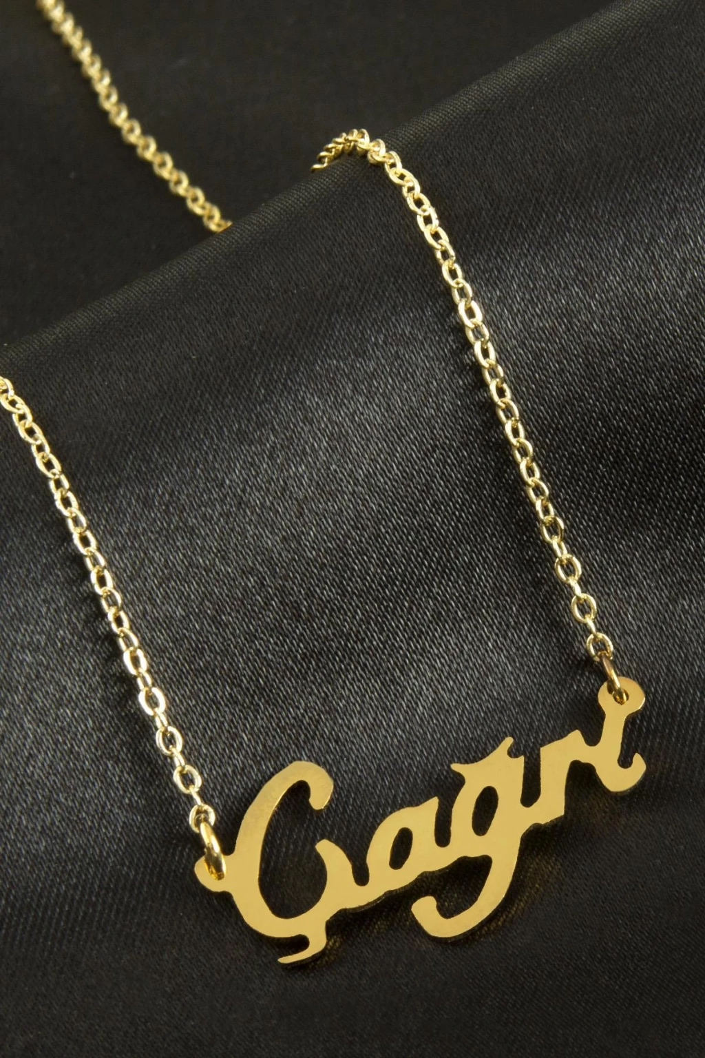 Çağrı İsimli Kolye. İsimli kolye pirinç madeninden ve altın kaplamalıdır. Kişiye özel üretilmektedir.Yazdırmak istediğiniz ismi bize mesaj olarak iletmeniz gerekmektedir. Kullanıma bağlı olarak uzun süre kullanıma uygundur. Ürün malzemesi 1.sınıf kalitededir. Ürün ve zinciri sarı renktedir. Ürün zincir boyu 45 cm ve ürün üzerindeki isimler yaklaşık 3 cmdir. İsim boyları ürün ismine göre degişiklik göstermektedir.