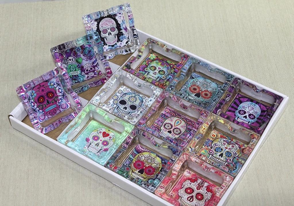 CAM KÜLLÜK MODEL 37Ürün ÖzellikleriRenkli kuru kafa tasarımlı cam küllük, estetik ve şık bir dekoratif objedir. Her türlü iç mekan dekorasyonuna uyum sağlayabilecek şık bir tasarıma sahiptir. Boyutları ve tasarımı sayesinde hem kullanışlı hem de göz alıcıdır. Yüksek kaliteli cam malzemeden üretilmiştir ve dayanıklıdır.Paket İçeriği1 Adet Cam Küllük Model 37