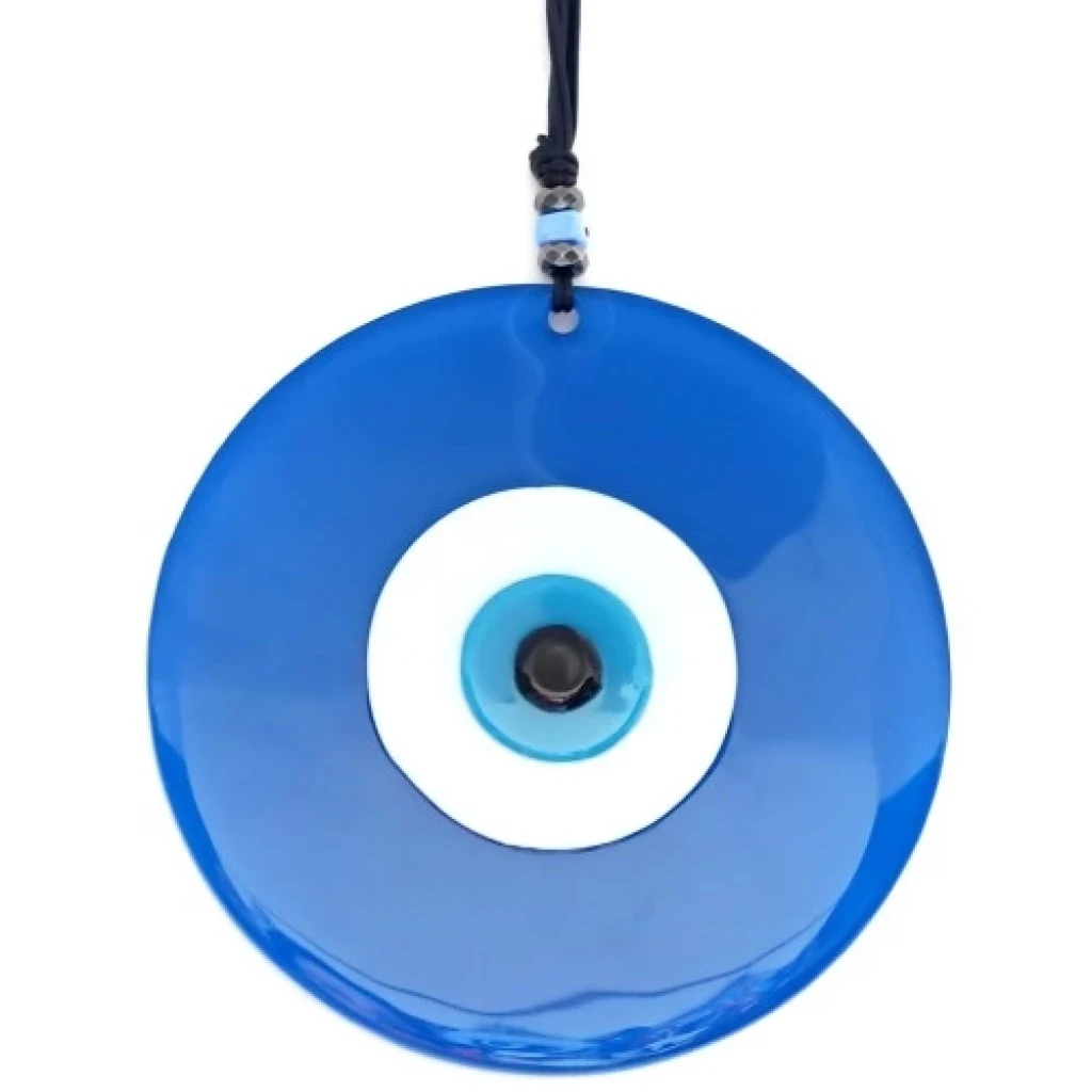 Mavi renk nazar boncuklu deri ipli ürünümüz tamamen el işçiliği ile üretilmiştir. 8 mm kalınlığında birinci kalite camla üretilmiştir. Cam duvar süsümüz 20 santimetre çapındadır. Ürünümüz ip dahil 32 santimetre boyundadır.Özel günlerde sevdiklerinize verebileceğiniz anlamlı bir hediye olan cam nazar boncuklu duvar süsü, yeni evlenen çiftlere veya evine farklılık katmak isteyenlere hitap ediyor. El işçiliği ile üretilen bu ürün, uzun yıllar kullanabileceğiniz özel bir parça.