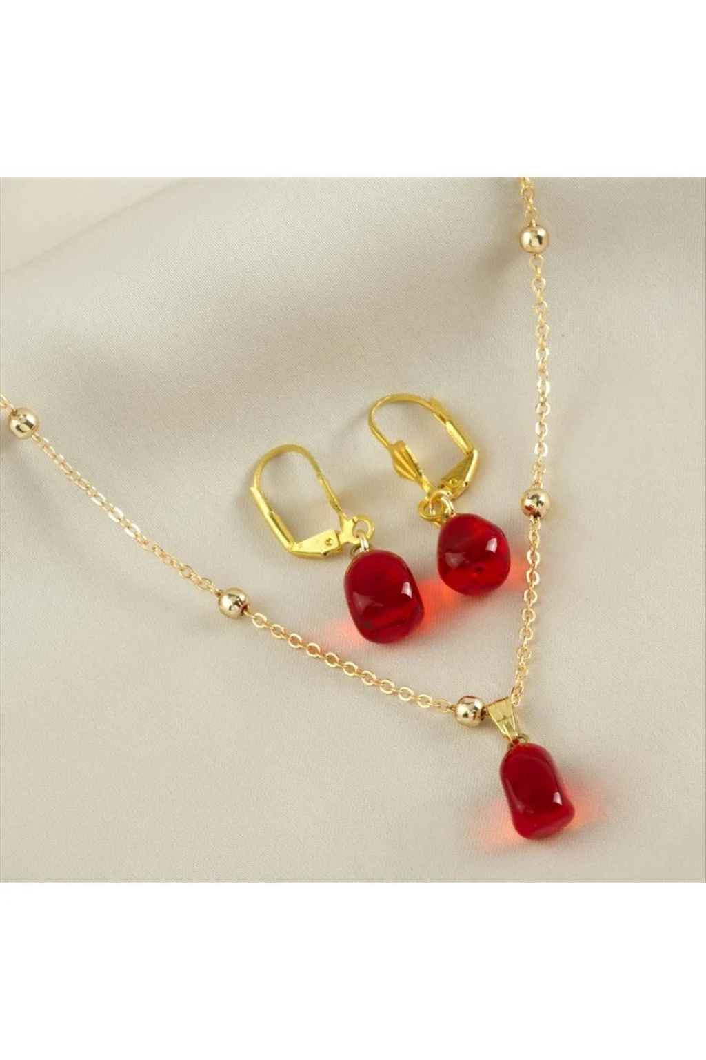 Set Kolye; Ürün malzemesi cam ve metaldir. Ürün 1 sınıf ustalar tarafından el işçiliği ile hazırlanmıştır. Ürün kutuludur. Nar ucu yapısı cam sanatının ateş ile şekil bulmuş halidir. Ürün şekil yapısında küçük farklılık göstere bilmektedir. Ürün zincir boyu 43 cmdir. Ürün içersin de 1 çift küpe ve 1 adet kolye ile beraber gönderilecektir. Ürün kutu renkleri asortilidir. Siparişleriniz de karışık olarak gönderilecektir.