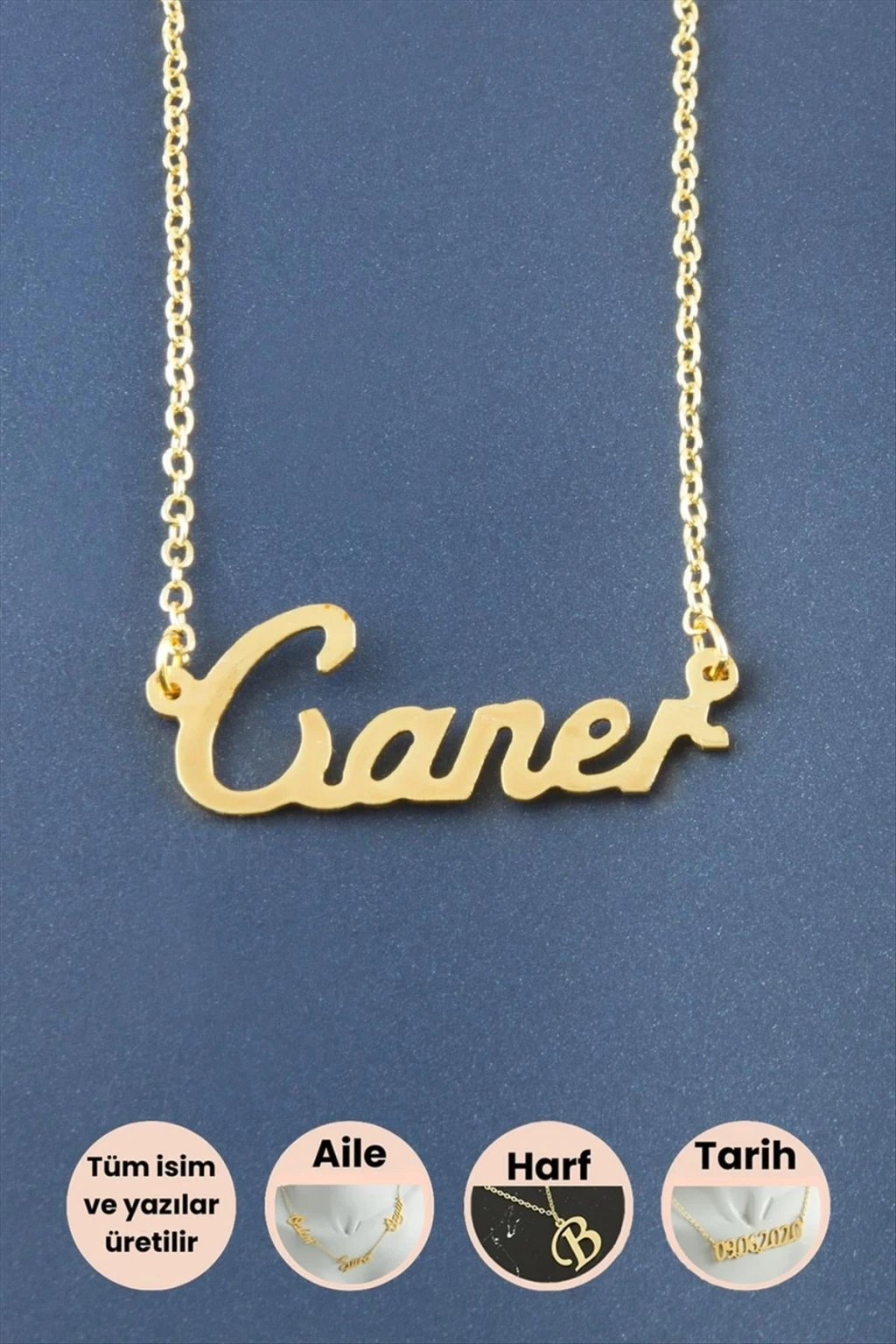 Caner İsimli Kolye; İsimli kolye pirinç madeninden ve altın kaplamalıdır. Kişiye özel üretilmektedir. Yazdırmak istediğiniz ismi bize mesaj olarak iletmeniz gerekmektedir.; Kullanıma bağlı olarak uzun süre kullanıma uygundur. Ürün malzemesi 1.sınıf kalitededir. Ürün ve zinciri sarı renktedir. Ürün zincir boyu 45 cm ve ürün üzerindeki isimler yaklaşık 3 cmdir. İsim boyları ürün ismine göre degişiklik göstermektedir.
