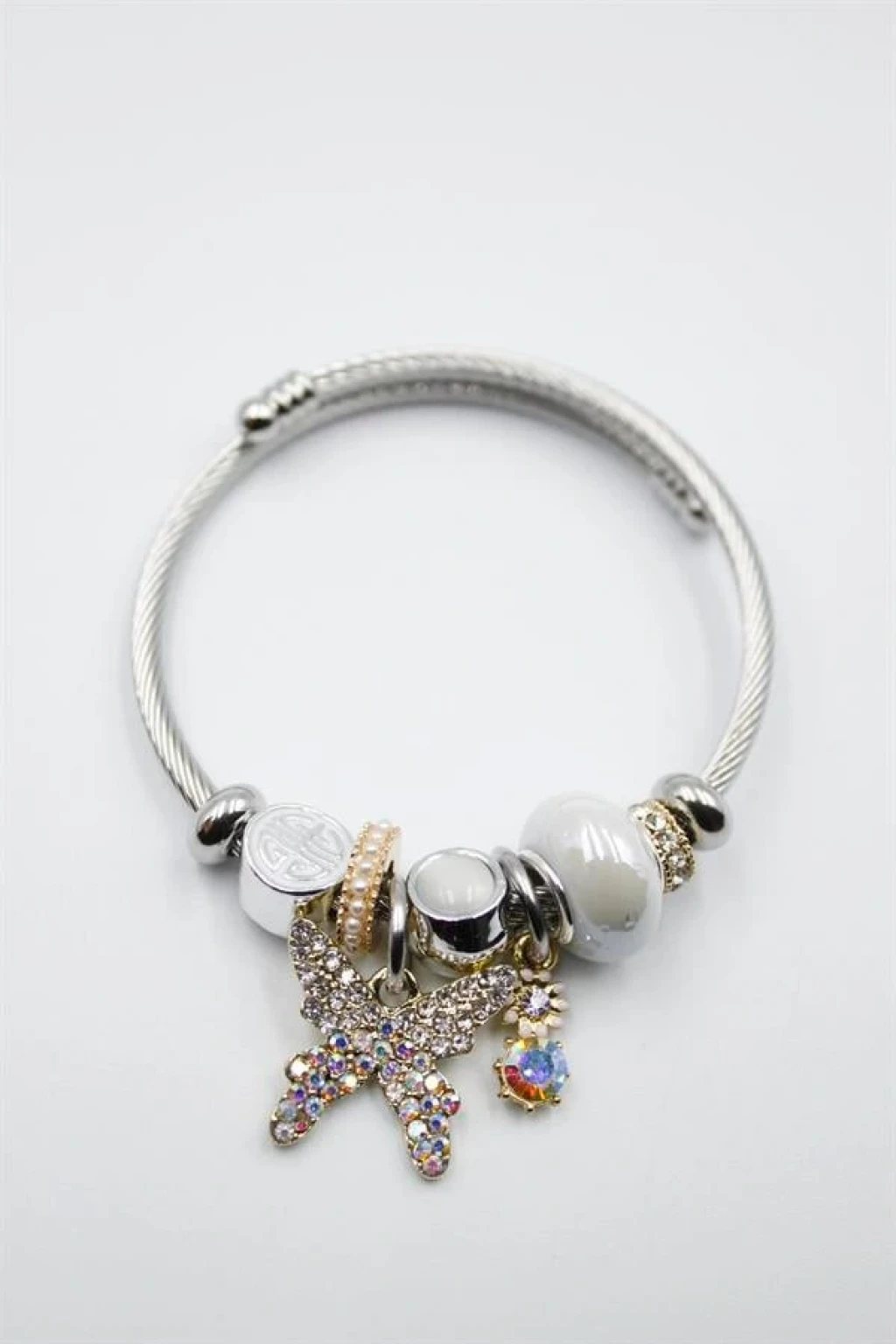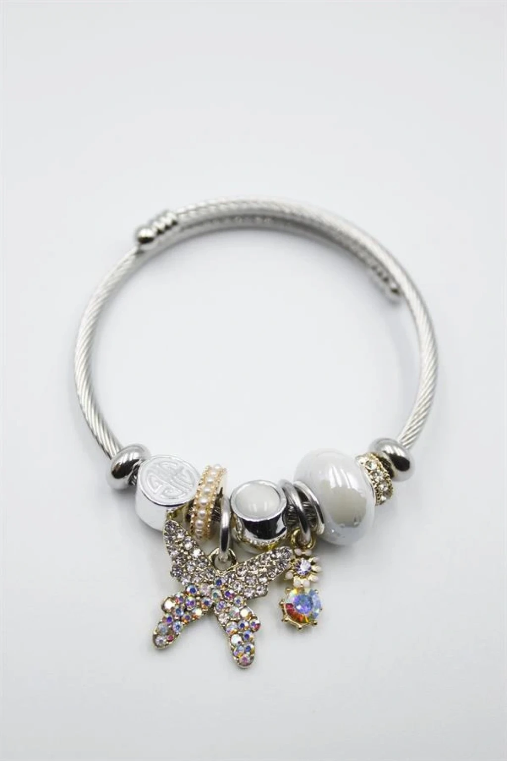 Çelik Charmlı Kelebek Bileklik - Beyaz