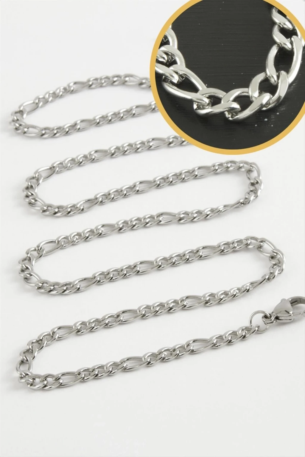 Kolye Zinciri; Ürün malzemesi çeliktir. 1 sınıf kaliteli malzeme kullanılmıştır. Ürün zincir boyu 50 cmdir.