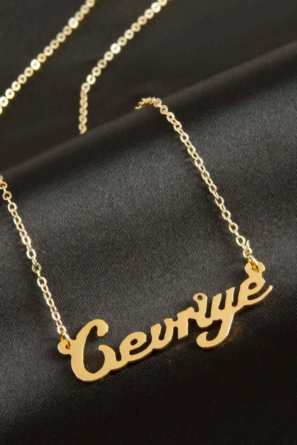 Cevriye İsimli Kolye. İsimli kolye pirinç madeninden ve altın kaplamalıdır. Kişiye özel üretilmektedir.Yazdırmak istediğiniz ismi bize mesaj olarak iletmeniz gerekmektedir. Kullanıma bağlı olarak uzun süre kullanıma uygundur. Ürün malzemesi 1.sınıf kalitededir. Ürün ve zinciri sarı renktedir. Ürün zincir boyu 45 cm ve ürün üzerindeki isimler yaklaşık 3 cmdir. İsim boyları ürün ismine göre degişiklik göstermektedir.