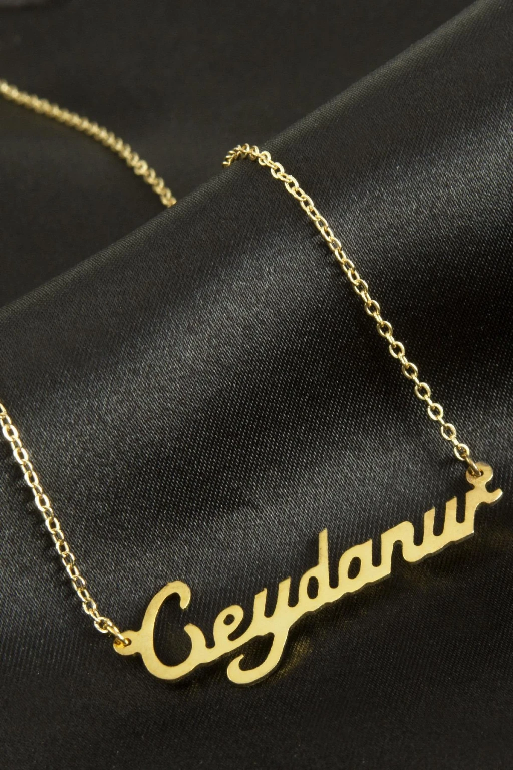 Ceydanur İsimli Kolye. İsimli kolye pirinç madeninden ve altın kaplamalıdır. Kişiye özel üretilmektedir.Yazdırmak istediğiniz ismi bize mesaj olarak iletmeniz gerekmektedir. Kullanıma bağlı olarak uzun süre kullanıma uygundur. Ürün malzemesi 1.sınıf kalitededir. Ürün ve zinciri sarı renktedir. Ürün zincir boyu 45 cm ve ürün üzerindeki isimler yaklaşık 3 cmdir. İsim boyları ürün ismine göre degişiklik göstermektedir.