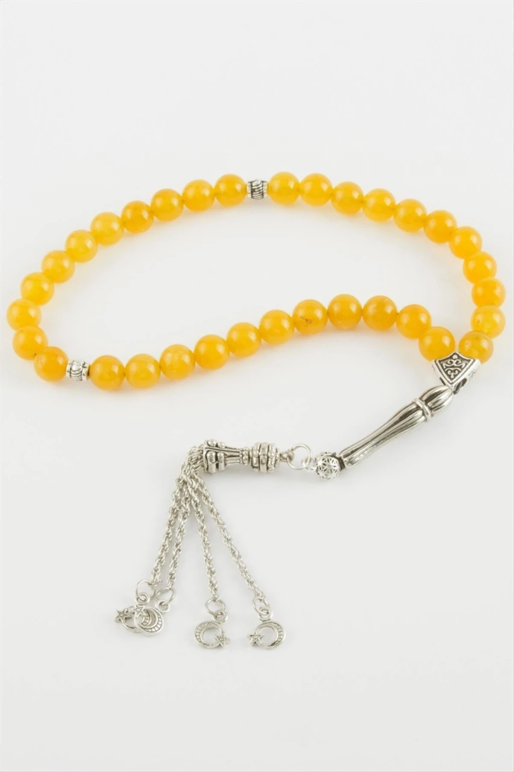 Tesbih ; Ceyt taşından imal edilmiştir. Taş boyutu 8 mmdir. Püskül figürleri asortilidir. Siparişlerinizde karışık olarak gönderilecektir.