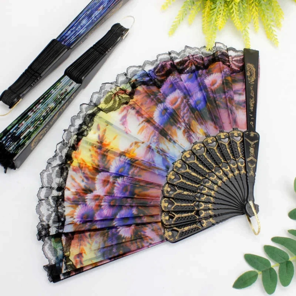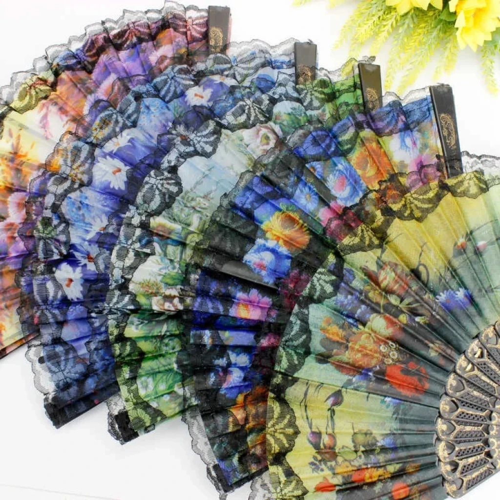 Dantelli Yelpaze Plastik Saplı Renkli Yelpaze Ispanyol Yelpaze