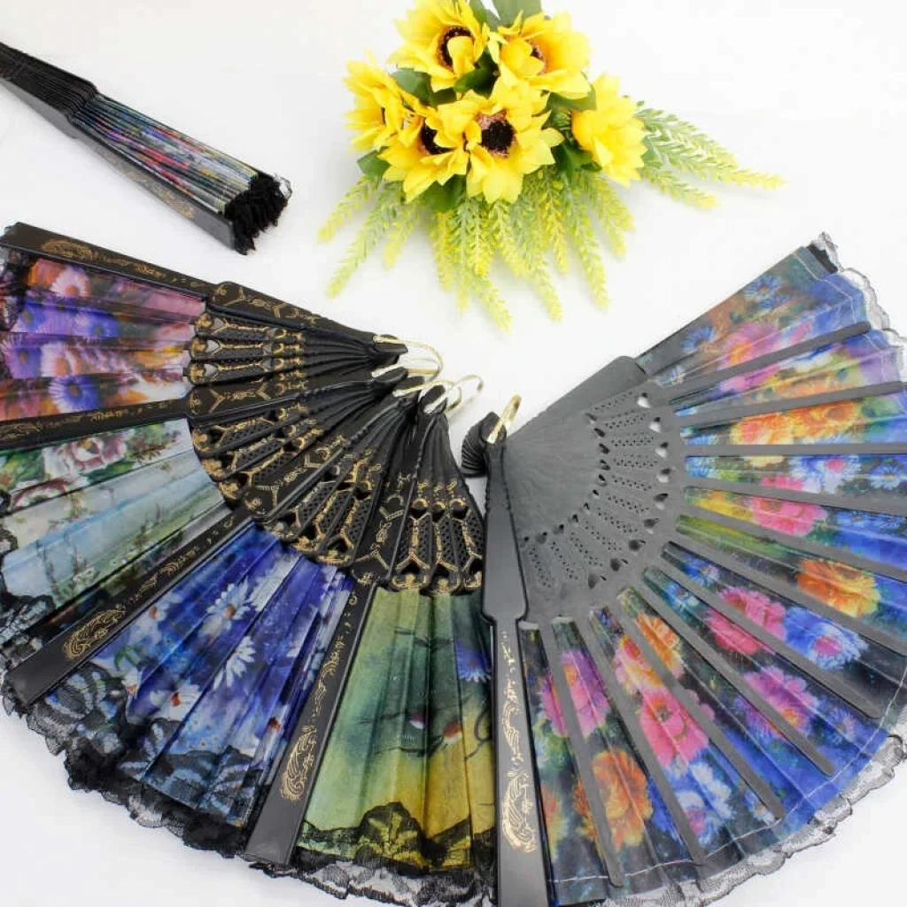 Çiçek Desenli Şık Serinletici Yelpaze 12'li Paket