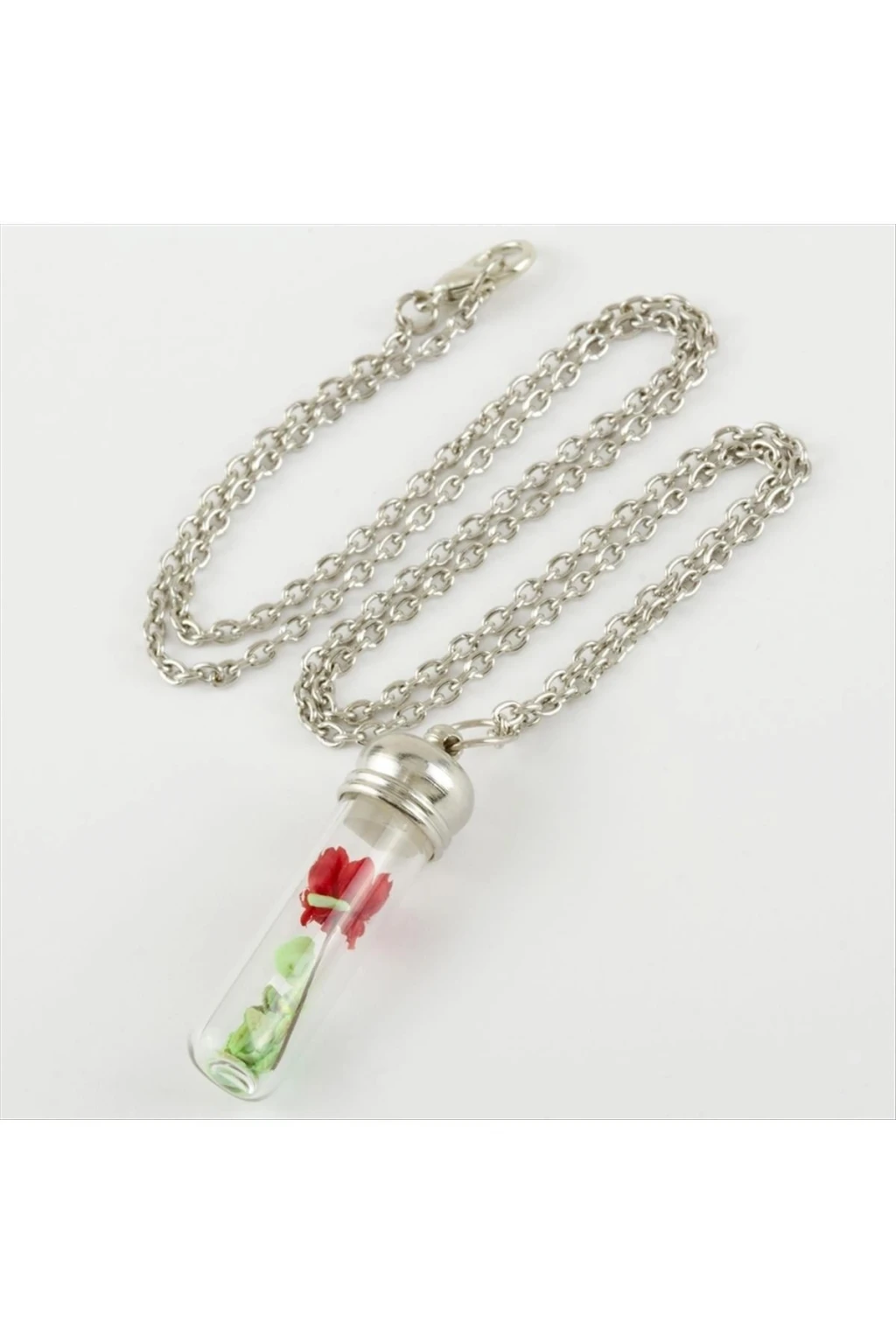 Canlı Kolye;Ürün malzemesi metal ve fanus camdır. Ürün zincir uzunluğu 65 cmdir. Paketiyle beraber gönderilecektir.