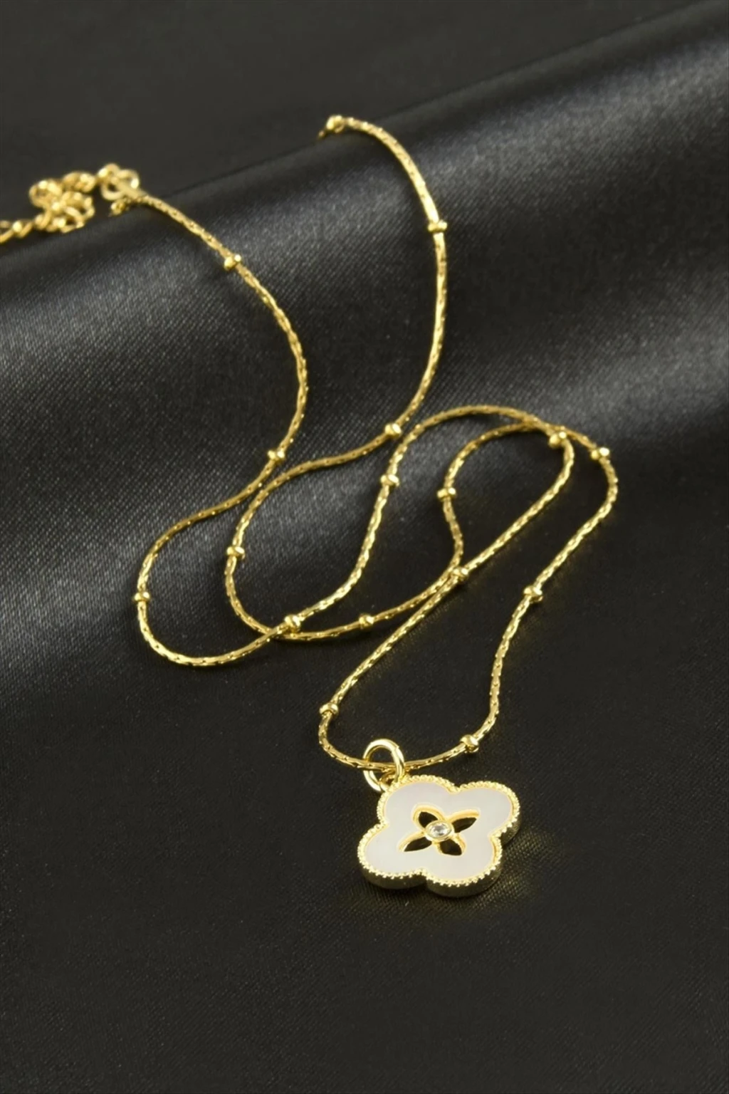 Kolye; Ürün malzemesi sedef, zirkon taş ve çeliktir. Kararma yapmaz. 1 nci sınıf kaliteli malzemeden üretilmiştir. Zincir uzunluğu 50 cm ve ucundaki aparat boyu 2 cmdir. Kartlı ve paketiyle beraber gönderilecektir.