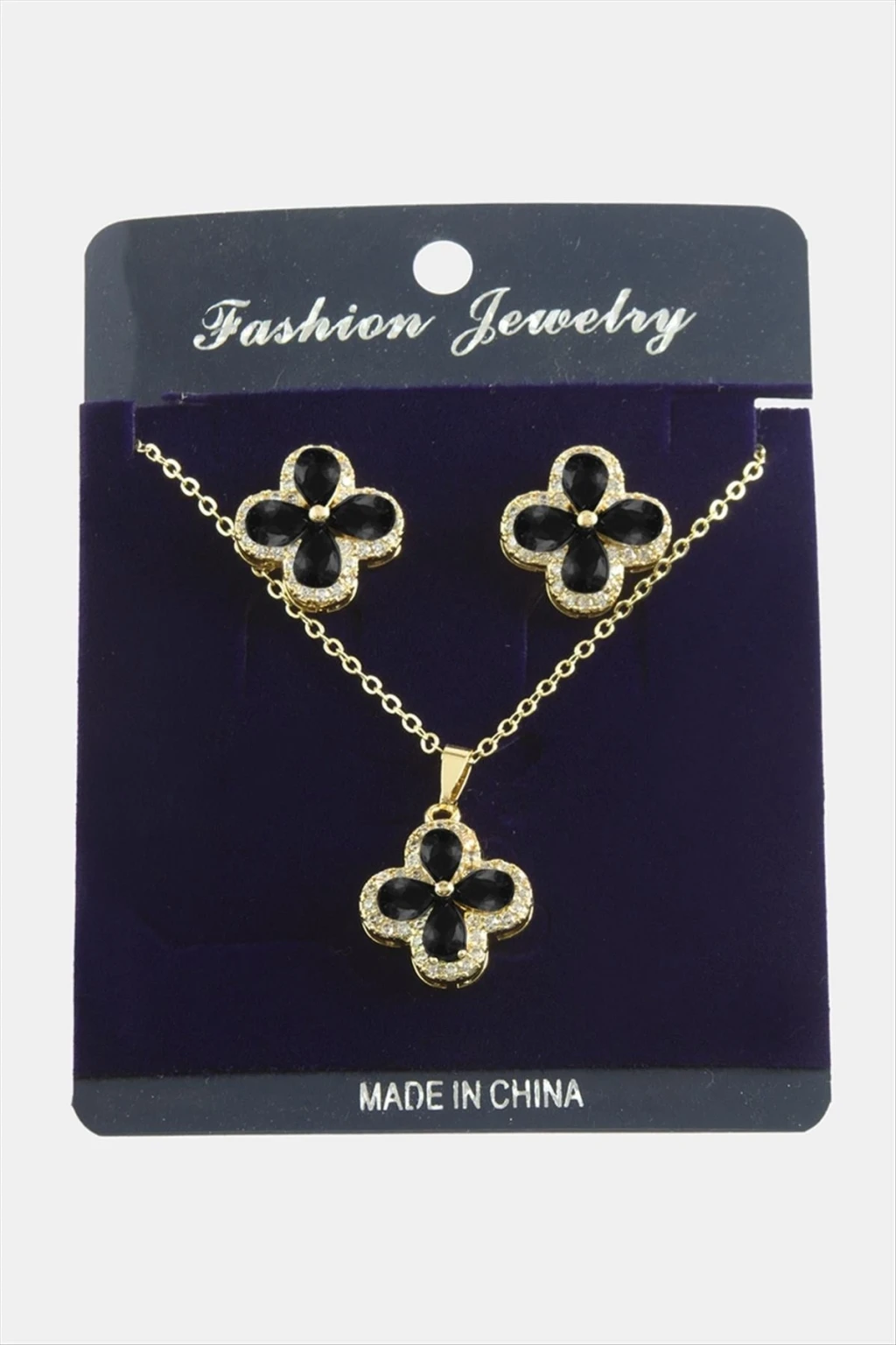 Kolye; Ürün malzemesi metal ve zirkon taştan üretilmiştir. 1 sınıf kaliteli malzeme kullanılmıştır. Ürün 1 adet kolye, ve 1 adet çift küpe vardır. Ürün zincir uzunluğu 45 santimdir. Ürün ucundaki taşlı aparat boyu 1,5 cmdir.