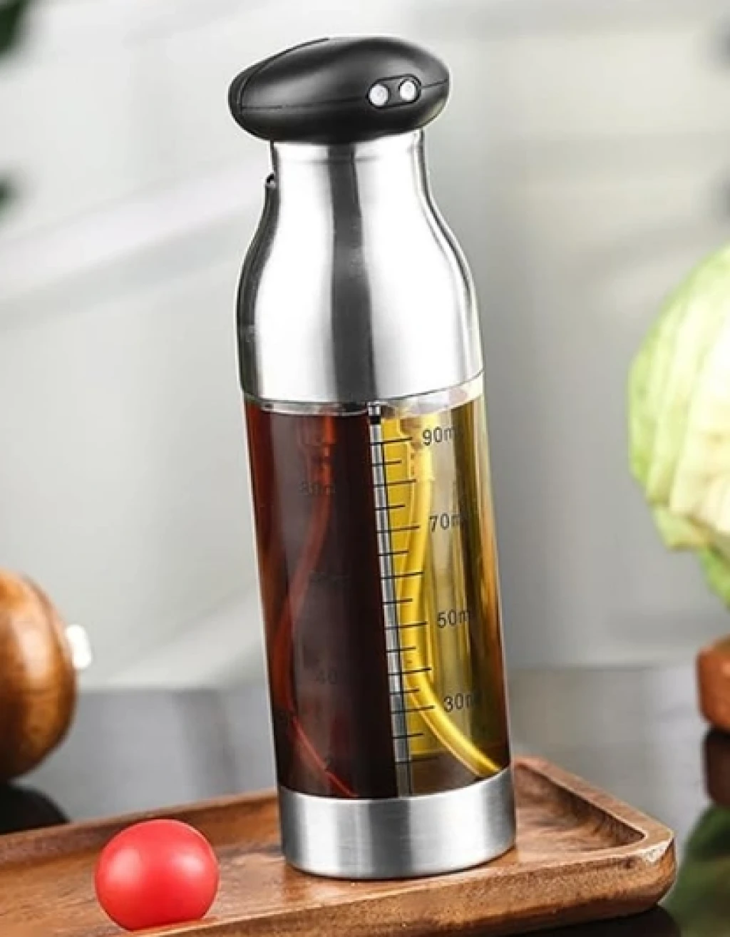 Çift Ölçekli Yağ ve Sirke Sprey ŞişesiÜrün Açıklaması:Bu yenilikçi 90 ml kapasiteli çift ölçekli yağ ve sirke sprey şişesi, mutfağınızda yağ ve sirke kullanımını daha da pratik hale getirir. Şeffaf gövdesindeki çift ölçek skalası sayesinde, yağı veya sirkeyi dilediğiniz miktarda kolayca ölçebilir ve yemeklerinize dengeli bir şekilde ekleyebilirsiniz. Paslanmaz çelik tasarımı, dayanıklılığı ve şıklığı bir araya getirirken, sprey başlığıyla homojen bir dağılım sağlar. Salatalardan kızartmalara kadar her türlü yemeğinizde sağlıklı ve lezzetli bir deneyim yaşamanızı sağlar.Malzeme: Paslanmaz çelik ve şeffaf plastik gövdeKapasite: 90 mlÇift Ölçekli Gövde: İki ayrı ölçüm skalası ile kolay miktar kontrolüSprey Başlığı: Homojen ve kontrollü dağılım için idealKullanım Alanı: Salatalar, kızartmalar ve diğer yemeklerde sağlıklı yağ ve sirke kullanımı
