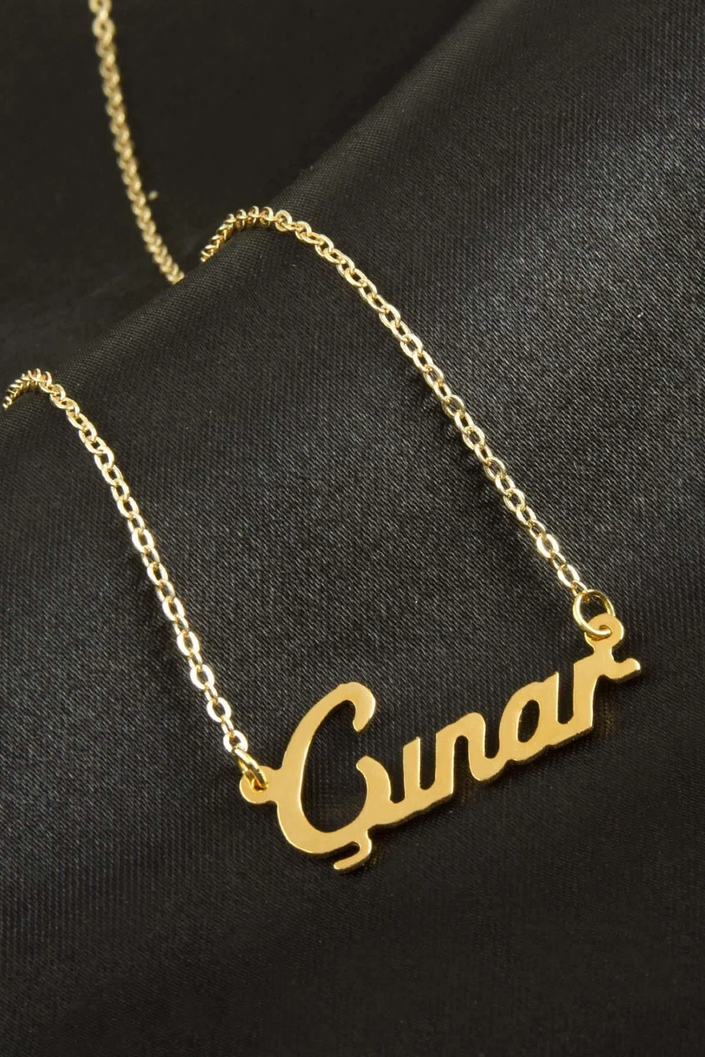 Çınar İsimli Kolye. İsimli kolye pirinç madeninden ve altın kaplamalıdır. Kişiye özel üretilmektedir.Yazdırmak istediğiniz ismi bize mesaj olarak iletmeniz gerekmektedir. Kullanıma bağlı olarak uzun süre kullanıma uygundur. Ürün malzemesi 1.sınıf kalitededir. Ürün ve zinciri sarı renktedir. Ürün zincir boyu 45 cm ve ürün üzerindeki isimler yaklaşık 3 cmdir. İsim boyları ürün ismine göre degişiklik göstermektedir.