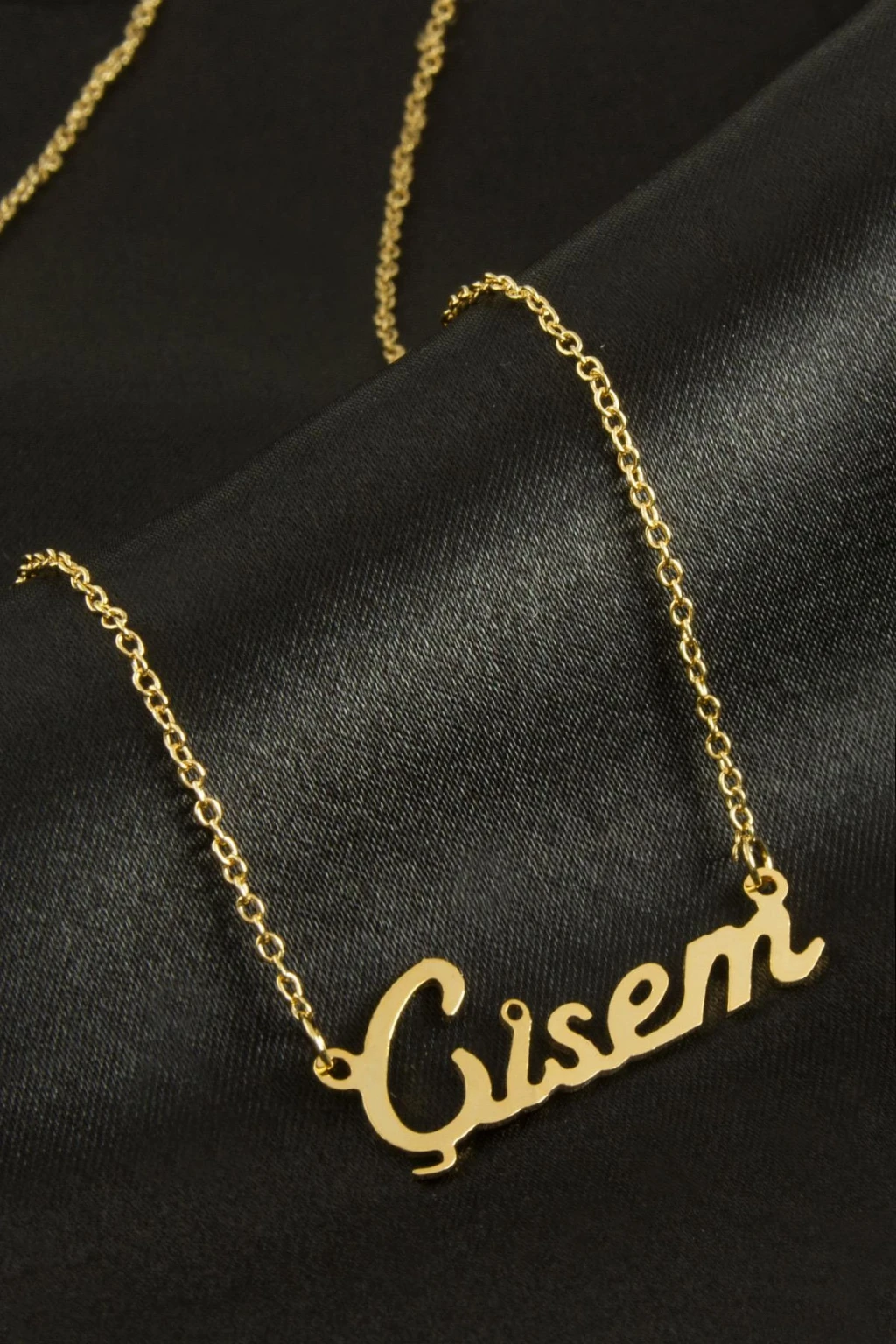 Çisem isimli kolye. İsimli kolye pirinç madeninden ve altın kaplamalıdır. Kişiye özel üretilmektedir.Yazdırmak istediğiniz ismi bize mesaj olarak iletmeniz gerekmektedir. Kullanıma bağlı olarak uzun süre kullanıma uygundur. Ürün malzemesi 1.sınıf kalitededir. Ürün ve zinciri sarı renktedir. Ürün zincir boyu 45 cm ve ürün üzerindeki isimler yaklaşık 3 cmdir. İsim boyları ürün ismine göre degişiklik göstermektedir.