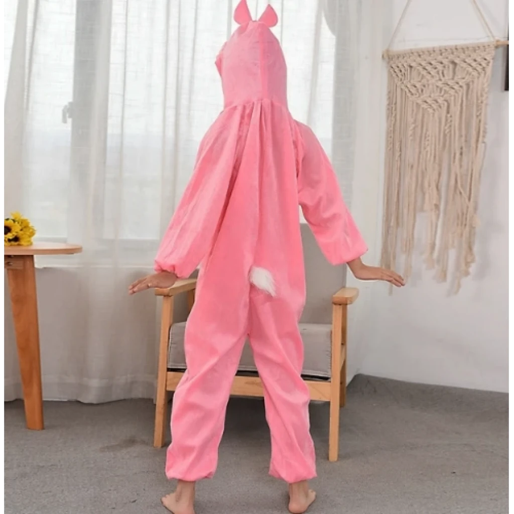 ÇOCUK TAVŞAN KOSTÜMÜ PEMBE RENK 2-3 YAŞÜrün ÖzellikleriYaş Grubu: 2-3 yaşBoyut: 80 cmRenk: PembeMalzeme: Yumuşak, rahat kumaşTasarım: Tavşan şeklinde, kulaklı kapüşon, kuyruk ve detaylı işçilikKullanım Alanı: Doğum günü partileri, kostüm etkinlikleri, HalloweenKonfor: Esnek ve hafif, çocukların rahatça hareket etmesini sağlar.Temizlik: Makinede yıkanabilir.Paket İçeriği1 adet Pembe Tavşan Kostümü1 adet Tavşan Kulaklı Kapüşon