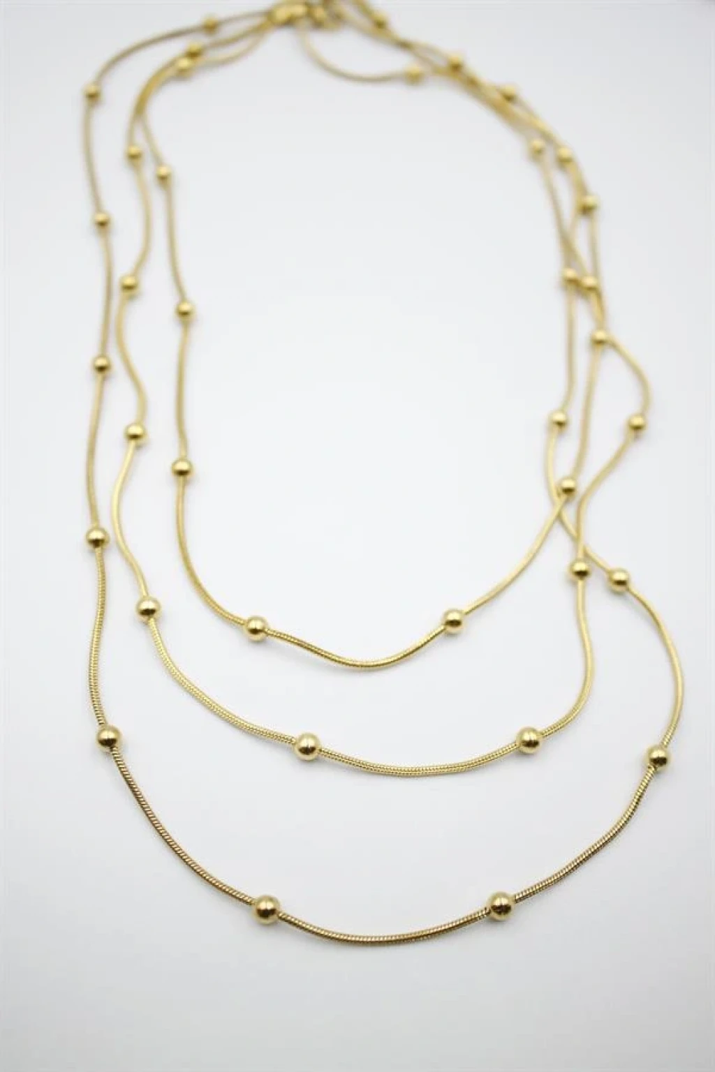 Çoklu Zincir Toplu Çelik Kolye - Altın