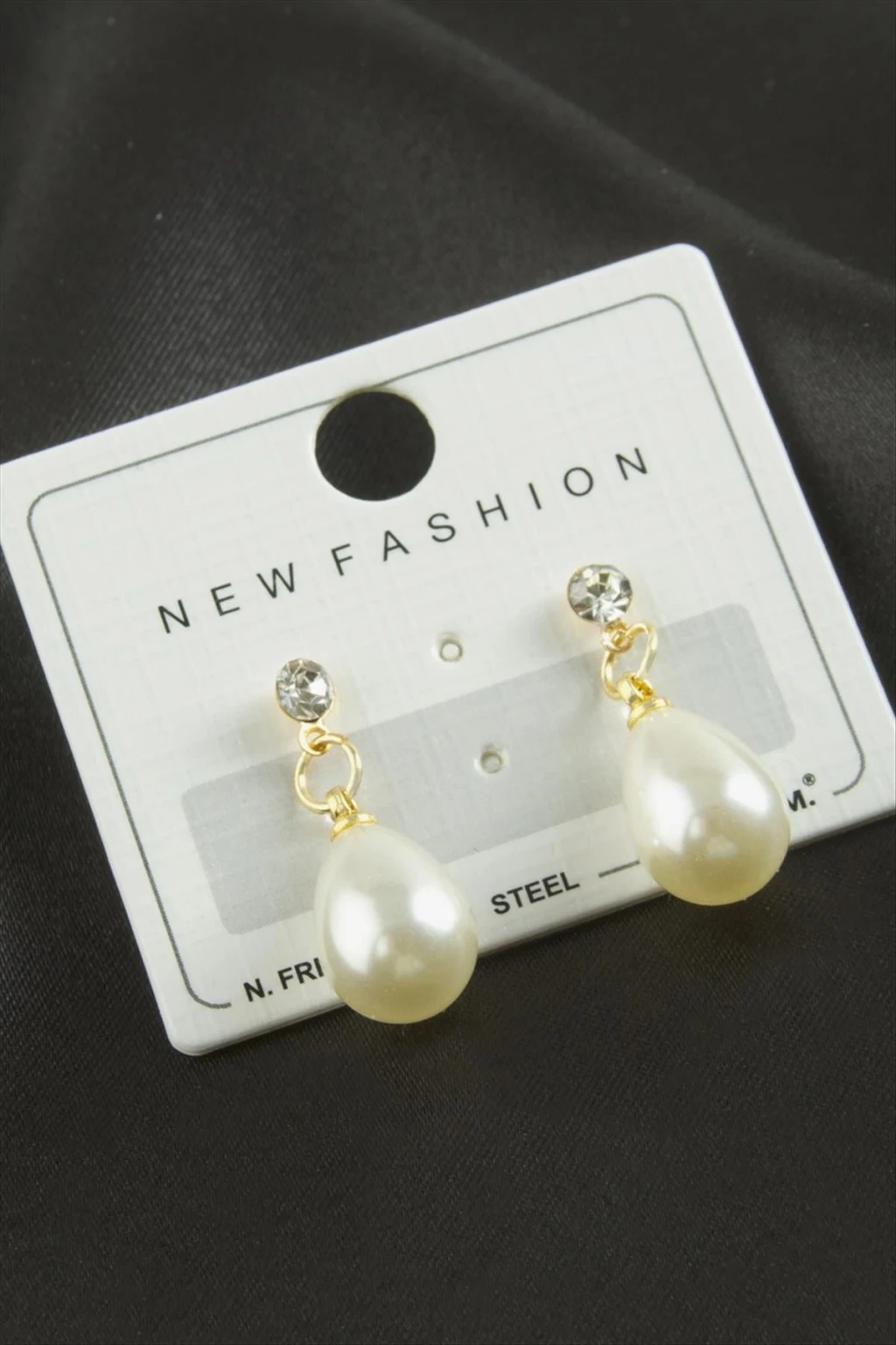 Küpe; Ürün malzemesi taş ve incidir. Ürün boyu 2,5 cmdir. Kartlıdır.