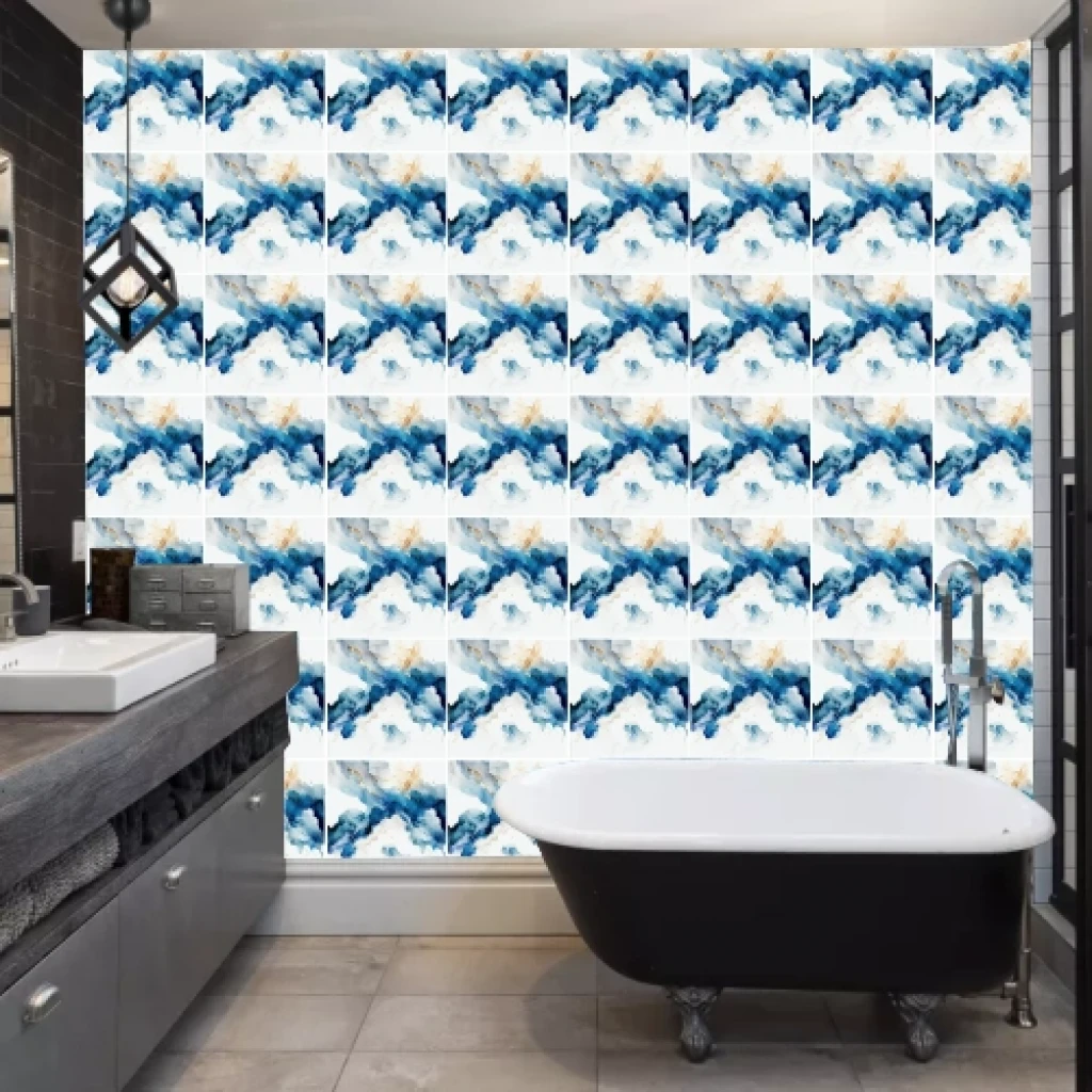Decohandy 30x30 Cm Pvc Duvar Karosu 4'lü Paket - Mavi Desen
