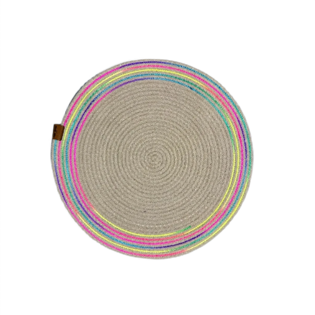 DecoHandy 39cm Neon Renkli Şeritli Jüt Örme Supla Amerikan Servis
