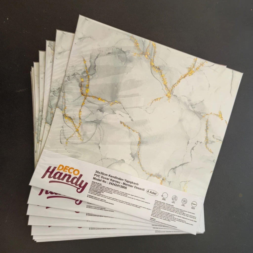 30x30 Cm Pvc Yer Karosu 4'lü Paket - Mermer Desenli BeyazÜrün Özellikleri Ev dekorasyonunda şıklık ve dayanıklılığı bir arada sunan 30x30 cm ebatlarında mermer desenli beyaz PVC yer karosu, modern ve estetik bir görünüm arayanlar için ideal bir seçenektir. 4'lü paket olarak sunulan bu karolar, hem kolay uygulanabilirliği hem de uzun ömürlü yapısıyla dikkat çekiyor. Gerçek mermerin doğal güzelliğini ve zarafetini yansıtan bu PVC karolar, suya ve neme karşı dayanıklılığı ile banyo, mutfak gibi alanlarda da rahatlıkla kullanılabilir. Kolay temizlenebilir yapısı ve leke tutmaz özelliğiyle, yoğun kullanıma uygun olan bu karolar, evinize değer katarak yaşam alanlarınızı dönüştürmeye yardımcı olur.Paket İçeriği4 adet DecoHandy Pvc Yer Karosu 30x30cm
