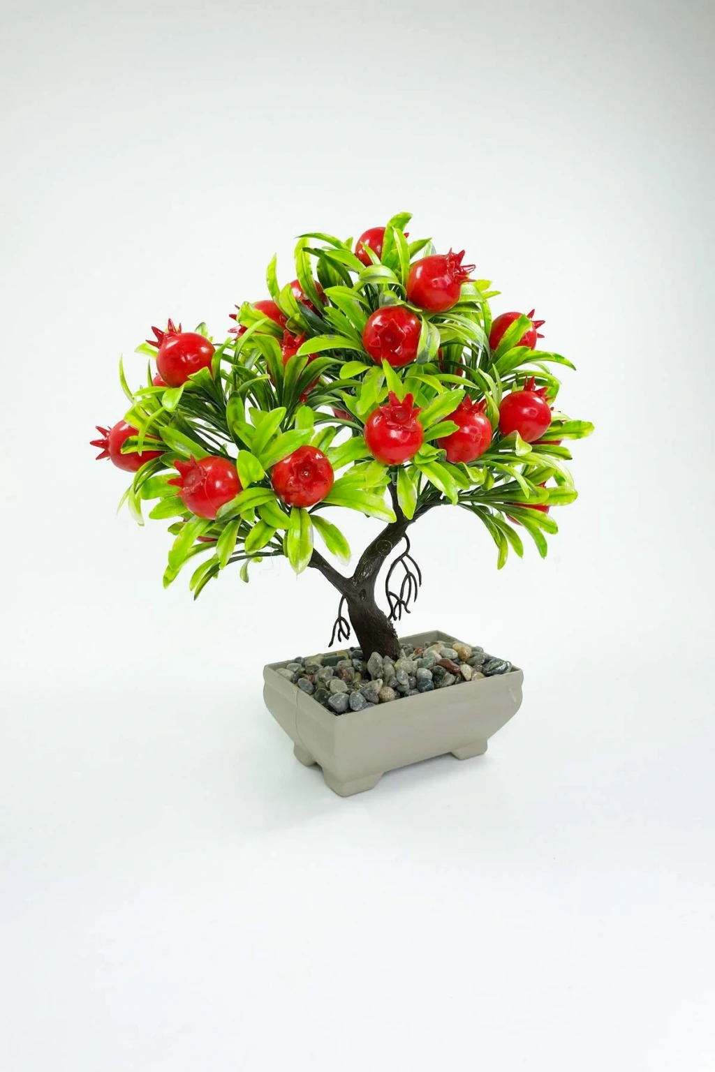 Dekor Ağaç Bereket Nar Ağacı Saksılı Dekoratif Ağaç Biblo 24x13 cm