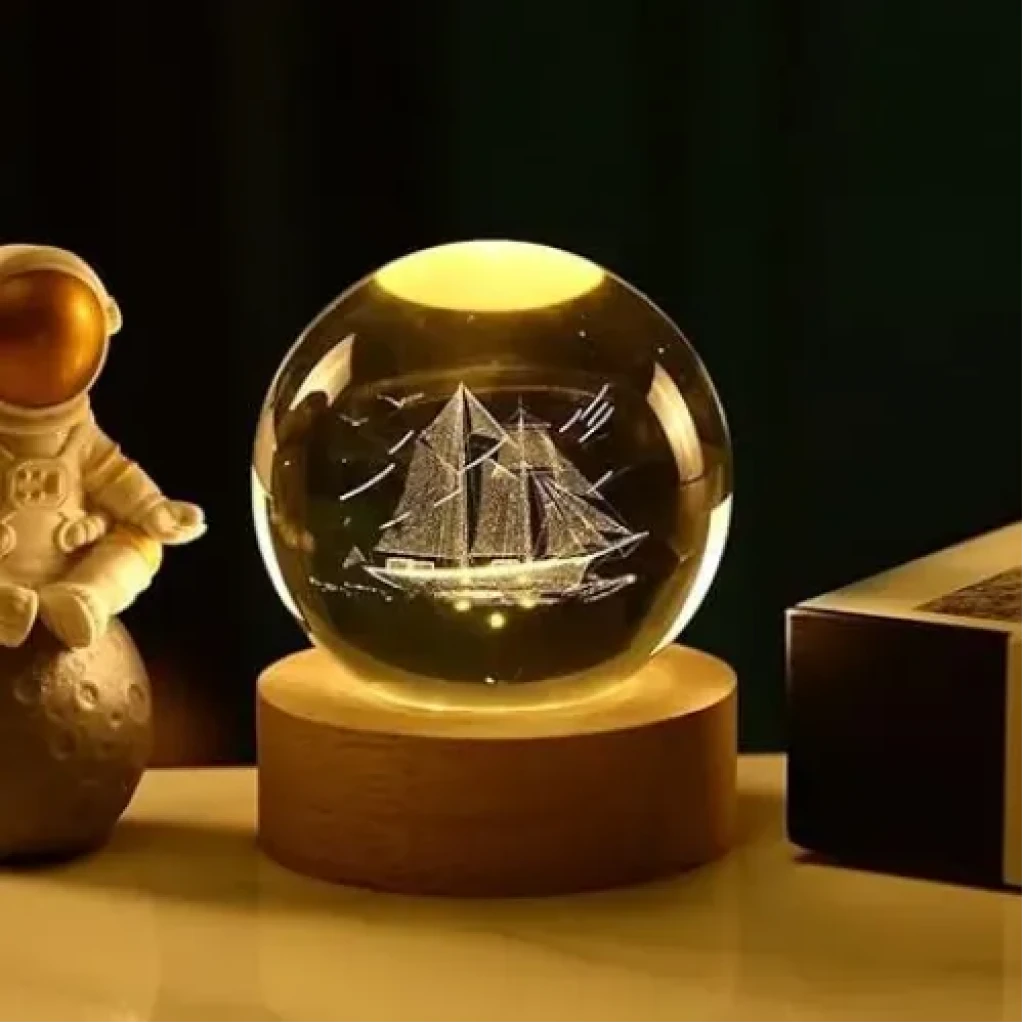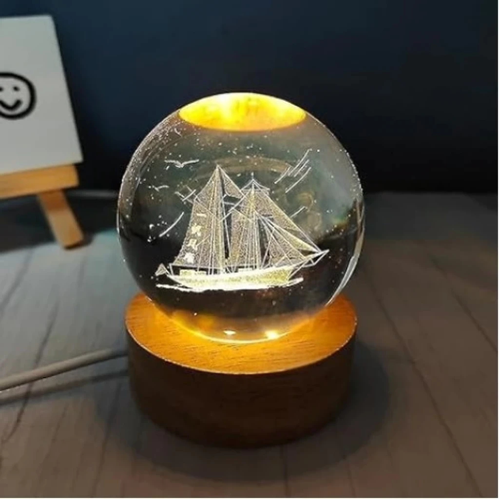 6cm gemi tasarımlı ışıklı cam küre ile odanıza denizcilik temalı bir hava katın. Ahşap altlığı ve LED ışığı ile benzersiz bir gece lambası.