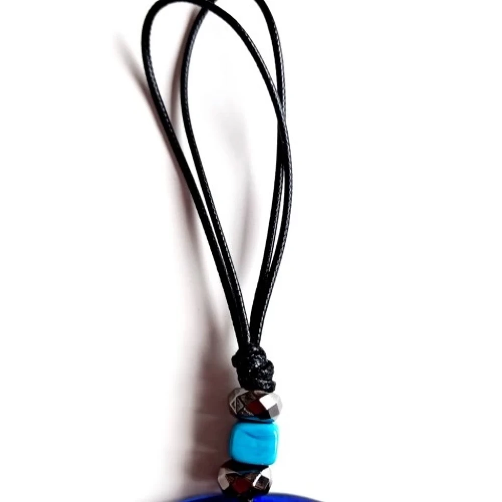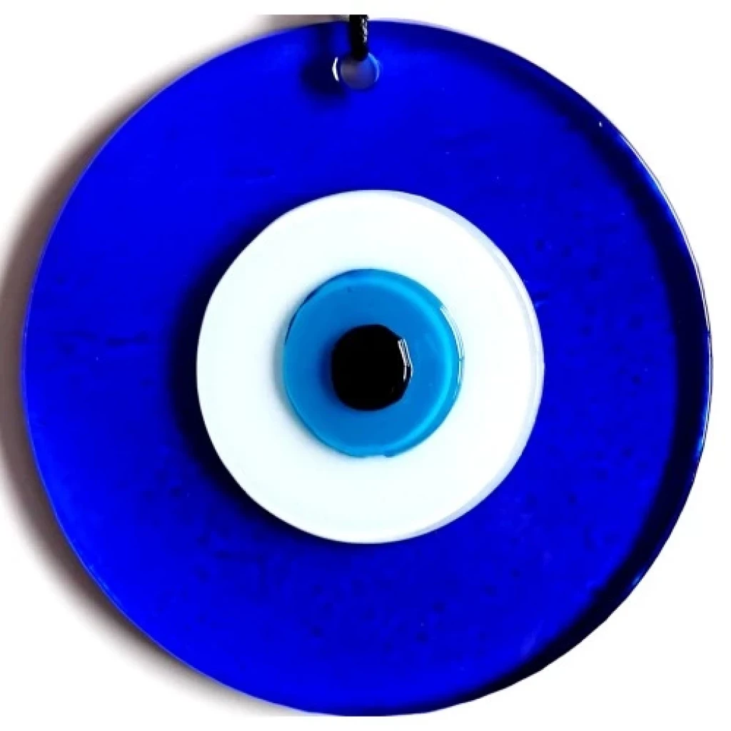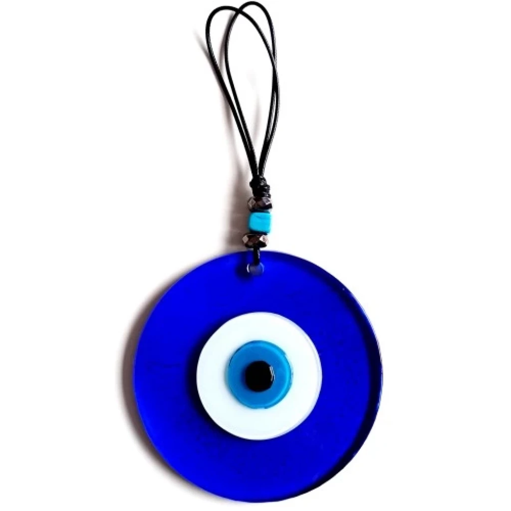 Nazar Boncuklu Mavi Renk şeffaf 12 santimetre çapındadır. Ürünümüz ip dahil 22 santimetre boyundadır. El işçiliği ile üretilmiş ürünümüzde birinci kalite cam kullanılmıştır.