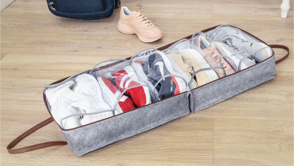Ayakkabı valizi içerisine 6 çift ayakkabı alır.