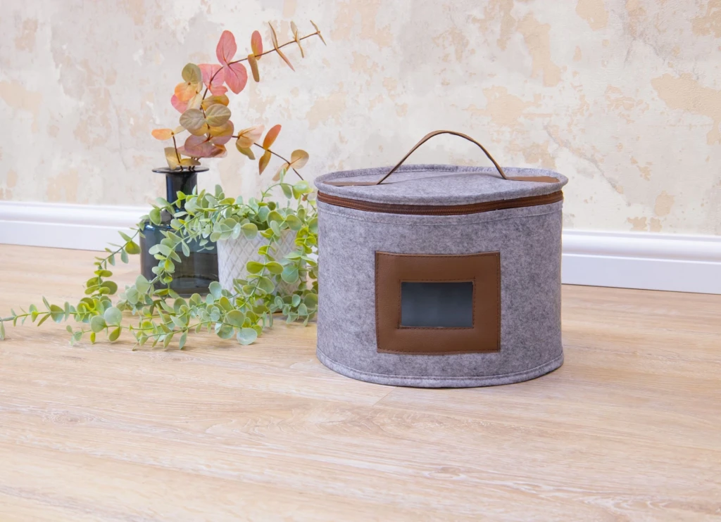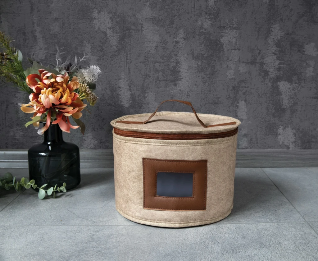 Deri Şeritli Pencereli Yuvarlak Çok Amaçlı Düzenleyici Organizer Kutu Keçe Çanta (maxi)