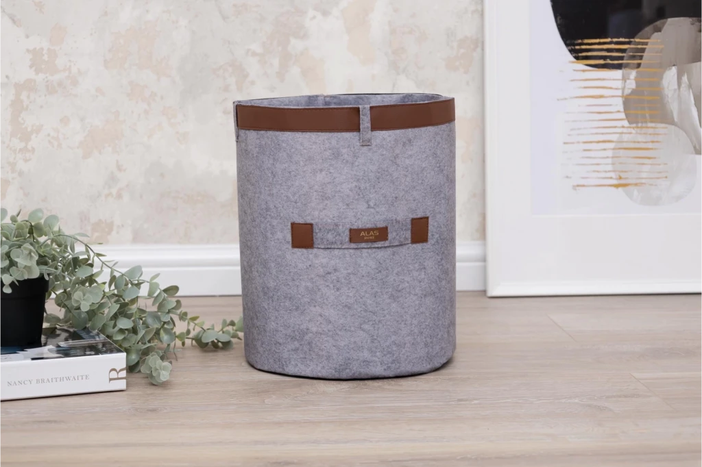 Deri Şeritli Yuvarlak Çok Amaçlı Düzenleyici Organizer Kutu Keçe Sepet (Mega)