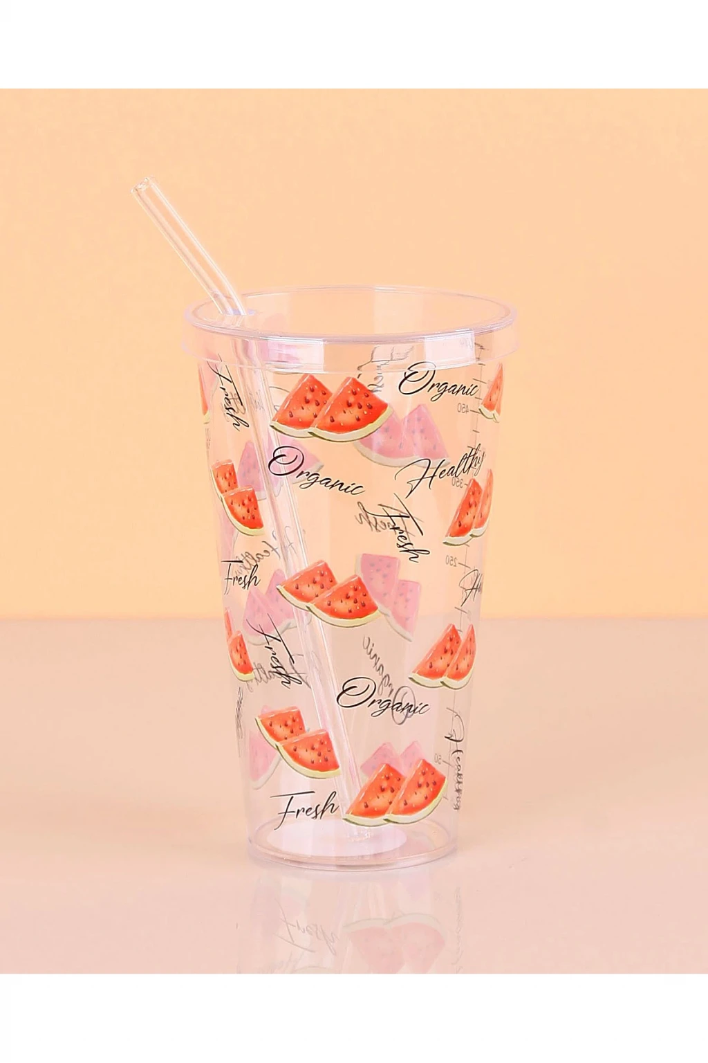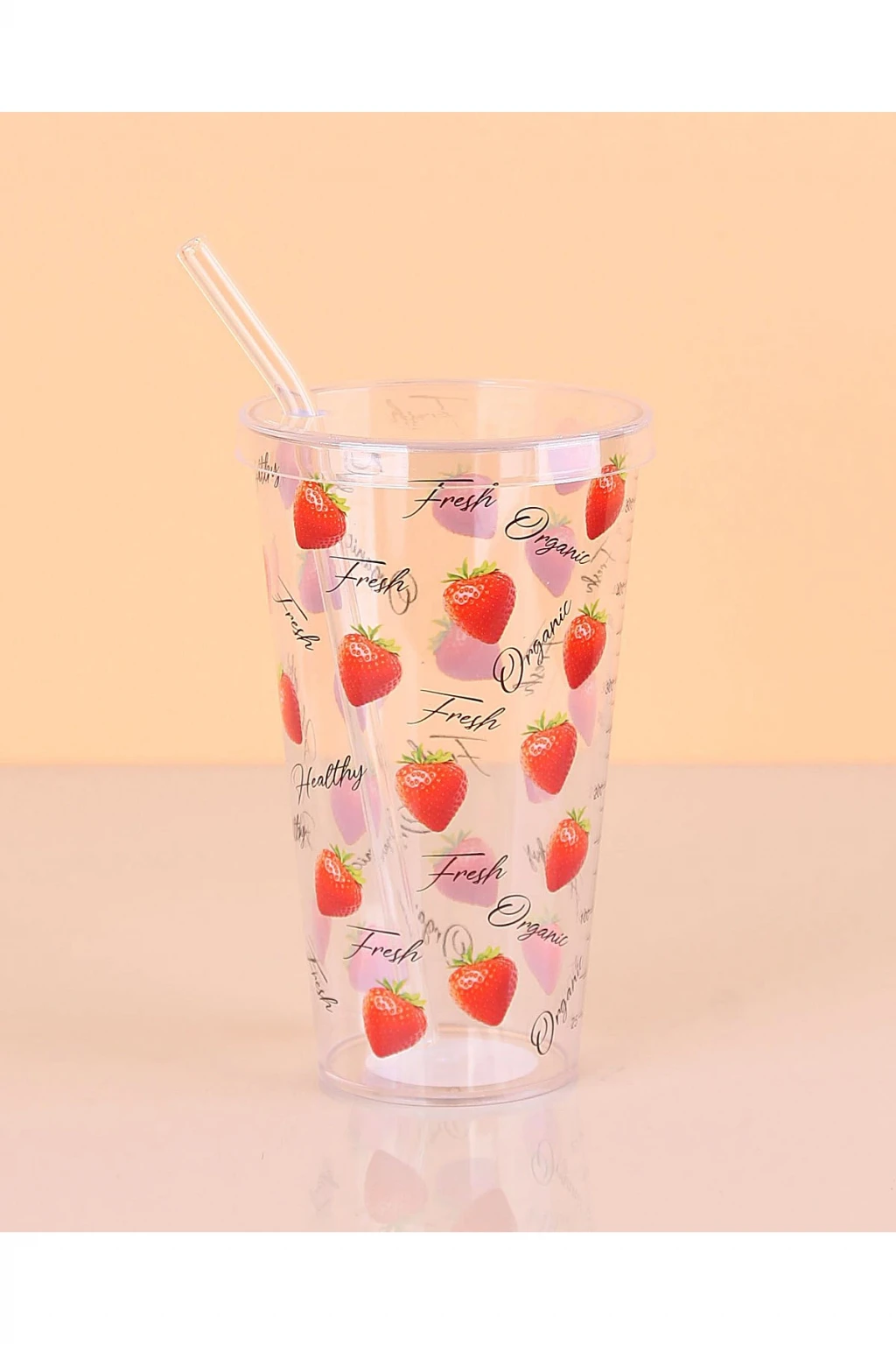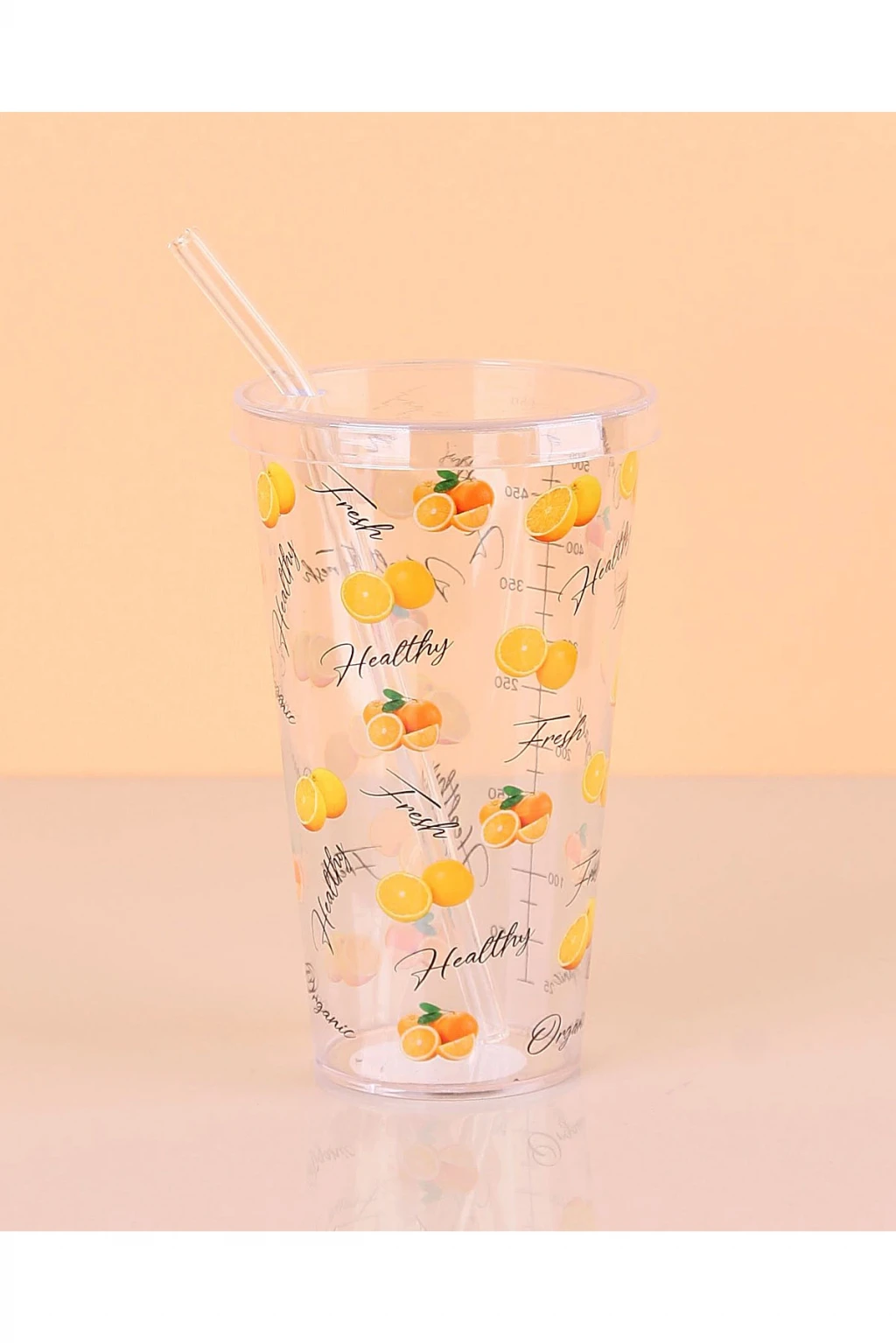 Desenli Plastik Pipetli Bardak 16 Cm 1 Adet Royaleks-ENF-040