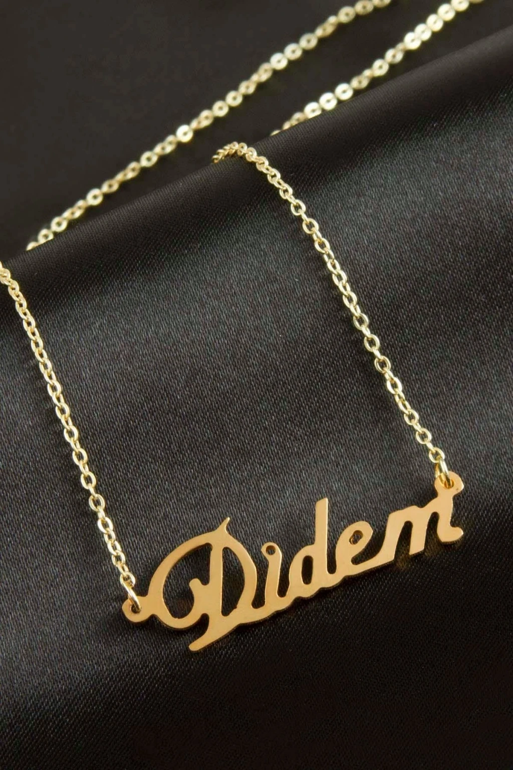 Didem isimli kolye. İsimli kolye pirinç madeninden ve altın kaplamalıdır. Kişiye özel üretilmektedir.Yazdırmak istediğiniz ismi bize mesaj olarak iletmeniz gerekmektedir. Kullanıma bağlı olarak uzun süre kullanıma uygundur. Ürün malzemesi 1.sınıf kalitededir. Ürün ve zinciri sarı renktedir. Ürün zincir boyu 45 cm ve ürün üzerindeki isimler yaklaşık 3 cmdir. İsim boyları ürün ismine göre degişiklik göstermektedir.