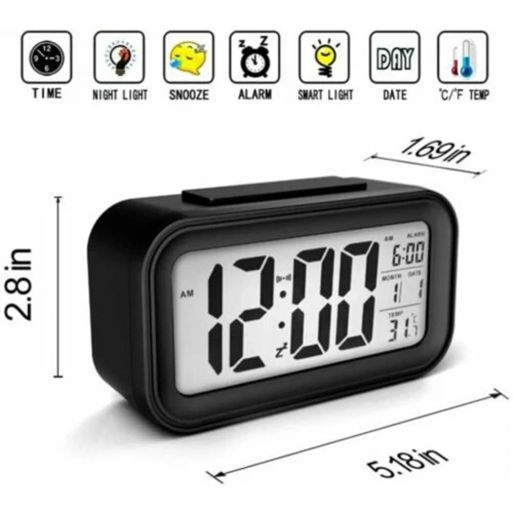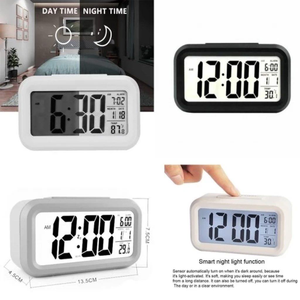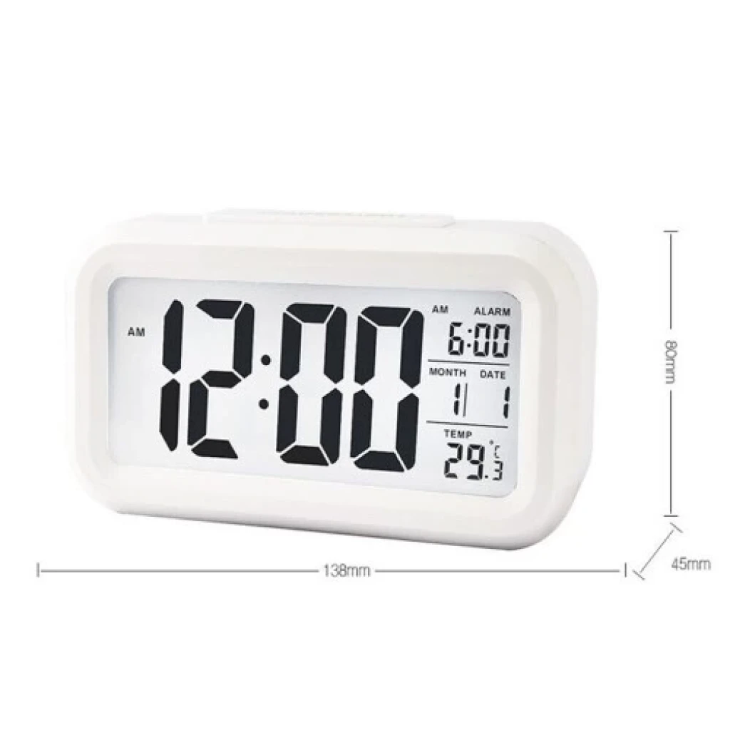 Dijital Alarmlı Masa SaatiDijital alarmlı masa saati ile artık hiç bir yere geç kalayacaksınız. Akıllı sensörlü alarmlı dijital masa saati şık görüntüsü ile masalarınızda evinizde çocuk odanızda yatak odanızda ofisinizde hem güzel bir dekor olacak hem de işlevselliği ile hayatınızı kolaylaştıracak.Gece odanızda baş ucunuza rahatlıkla koyabileceksiniz. Dijital olduğu için mekanizma sesi olmayacak büyük rakamları sayesinde okumada zorluk çekmeyeceksiniz. Işık sensörü sayesinde sensöre elinizi yaklaştırdığınız soft bir ışıkla saati okuyabileceksiniz. Normal zamanda ekranı karanlık olarak bekleyecek ve odanızda ışık oluşturmayacak. Eğer yakınınıza bırakamıyorsanız sensörün üzerine gece herhangi bir şey koyarak gece boyunca soft ışığı ile beklemesini sağlayabilirsiniz.Masa Saatinin Üst kısmında bulunan düğmeye basarak ışığını 5 saniye boyunca parlak bir şekilde aktif hale getirebilirsiniz.Dijital Alarmlı Masa Saati Özellikleri* Kaliteli Plastik malzemeden üretilmiştir.* 3 farklı ton şeklinde yükselen alarm sesi* Alarmı beklemeye aldığınızda her 5 dakikada bir yenileme* Gece ışığı ve ışık sensörü* Kolay ayarlama modu* Tarih ve oda sıcaklığı göstergesi* Karışık renklerde gönderilmektedir.* 3 adet AAA pil ile çalışmaktadır. (piller pakete dahil değildir.)Ürün Ölçüleri: 14 cm x 8 cm x 4.5 cm