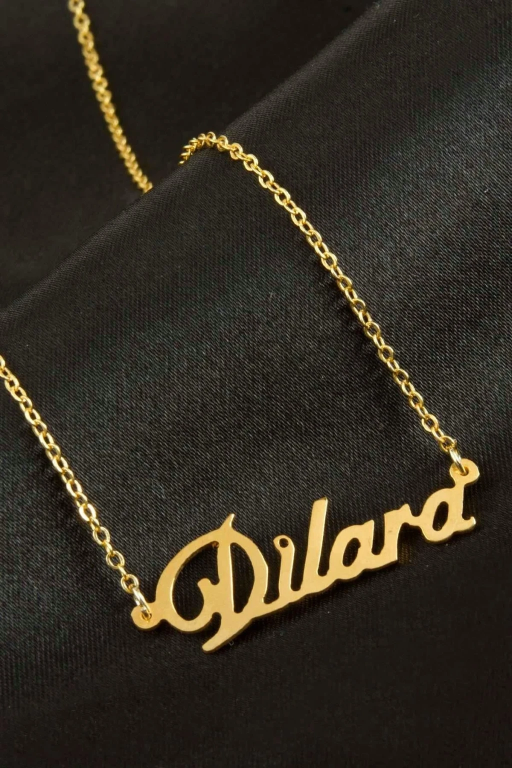 Dilara isimli kolye. İsimli kolye pirinç madeninden ve altın kaplamalıdır. Kişiye özel üretilmektedir.Yazdırmak istediğiniz ismi bize mesaj olarak iletmeniz gerekmektedir. Kullanıma bağlı olarak uzun süre kullanıma uygundur. Ürün malzemesi 1.sınıf kalitededir. Ürün ve zinciri sarı renktedir. Ürün zincir boyu 45 cm ve ürün üzerindeki isimler yaklaşık 3 cmdir. İsim boyları ürün ismine göre degişiklik göstermektedir.