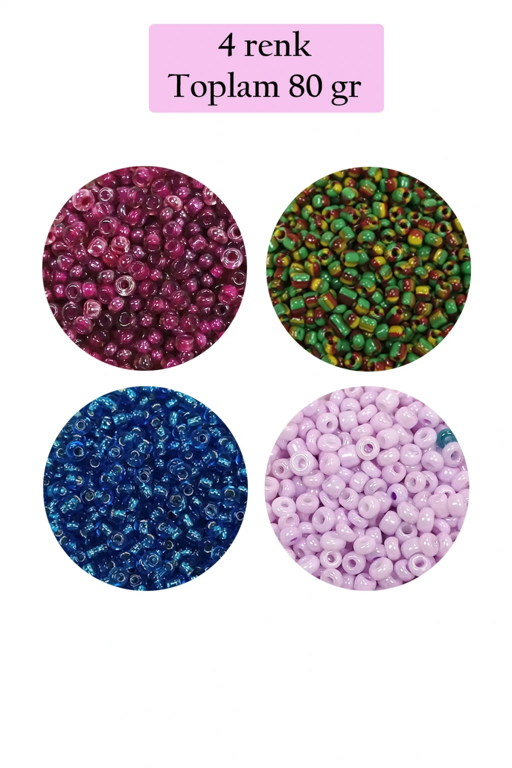 Dökme Cam Kum Boncuk (11/0) 2 mm - 4 Renk - Toplam 80 Gram - BNC400