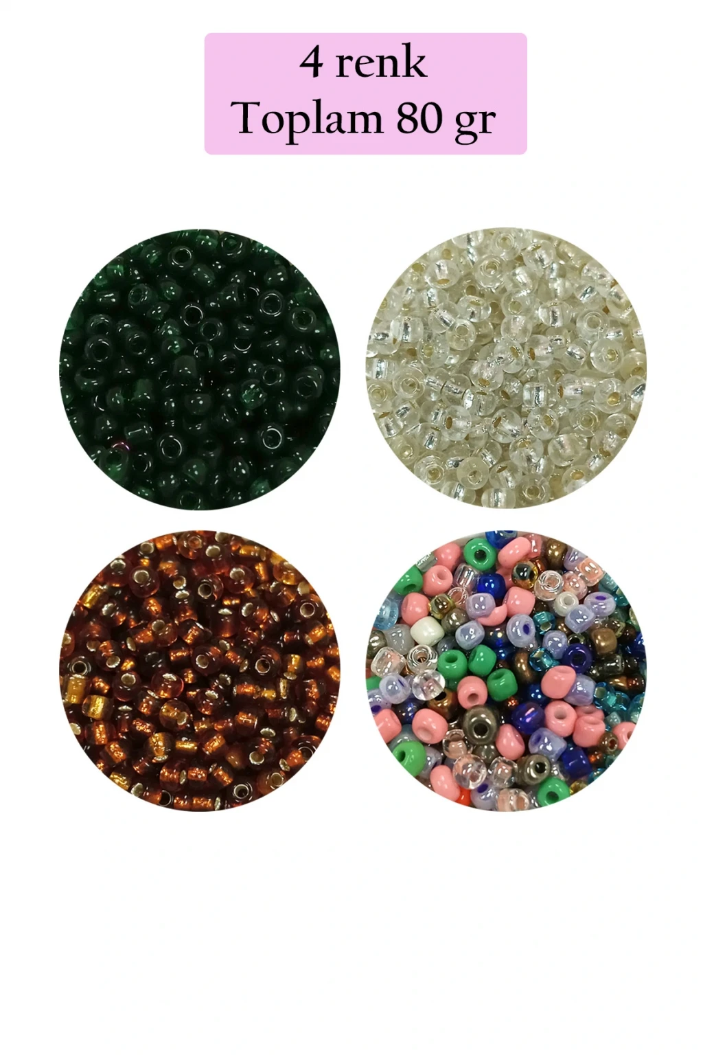 Dökme Cam Kum Boncuk (8/0) 3 mm - 4 Renk - Toplam 80 Gram - BNC419