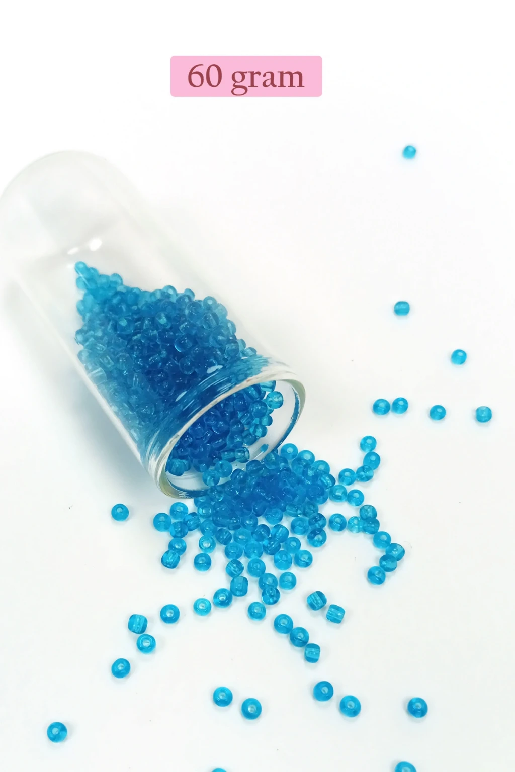 Dökme Cam Kum Boncuk (8/0) 3 mm - 60 Gram - Şeffaf Deniz Mavi - BNC221