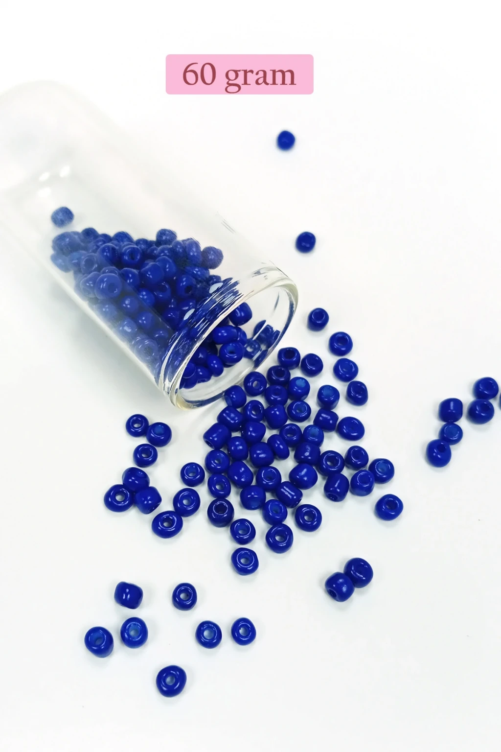 Dökme Cam Kum Boncuk Büyük Boy (6/0) 4 mm - 60 Gram - Koyu Mavi - BNC139