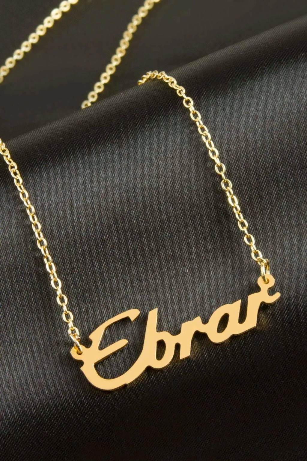 Ebrar isimli kolye. İsimli kolye pirinç madeninden ve altın kaplamalıdır. Kişiye özel üretilmektedir.Yazdırmak istediğiniz ismi bize mesaj olarak iletmeniz gerekmektedir. Kullanıma bağlı olarak uzun süre kullanıma uygundur. Ürün malzemesi 1.sınıf kalitededir. Ürün ve zinciri sarı renktedir. Ürün zincir boyu 45 cm ve ürün üzerindeki isimler yaklaşık 3 cmdir. İsim boyları ürün ismine göre degişiklik göstermektedir.