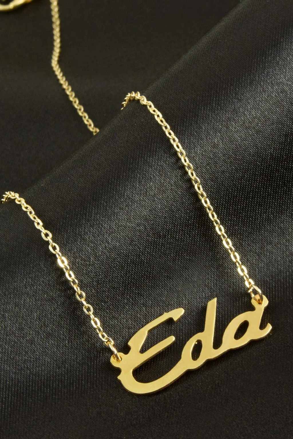 Eda isimli kolye. İsimli kolye pirinç madeninden ve altın kaplamalıdır. Kişiye özel üretilmektedir.Yazdırmak istediğiniz ismi bize mesaj olarak iletmeniz gerekmektedir. Kullanıma bağlı olarak uzun süre kullanıma uygundur. Ürün malzemesi 1.sınıf kalitededir. Ürün ve zinciri sarı renktedir. Ürün zincir boyu 45 cm ve ürün üzerindeki isimler yaklaşık 3 cmdir. İsim boyları ürün ismine göre degişiklik göstermektedir.