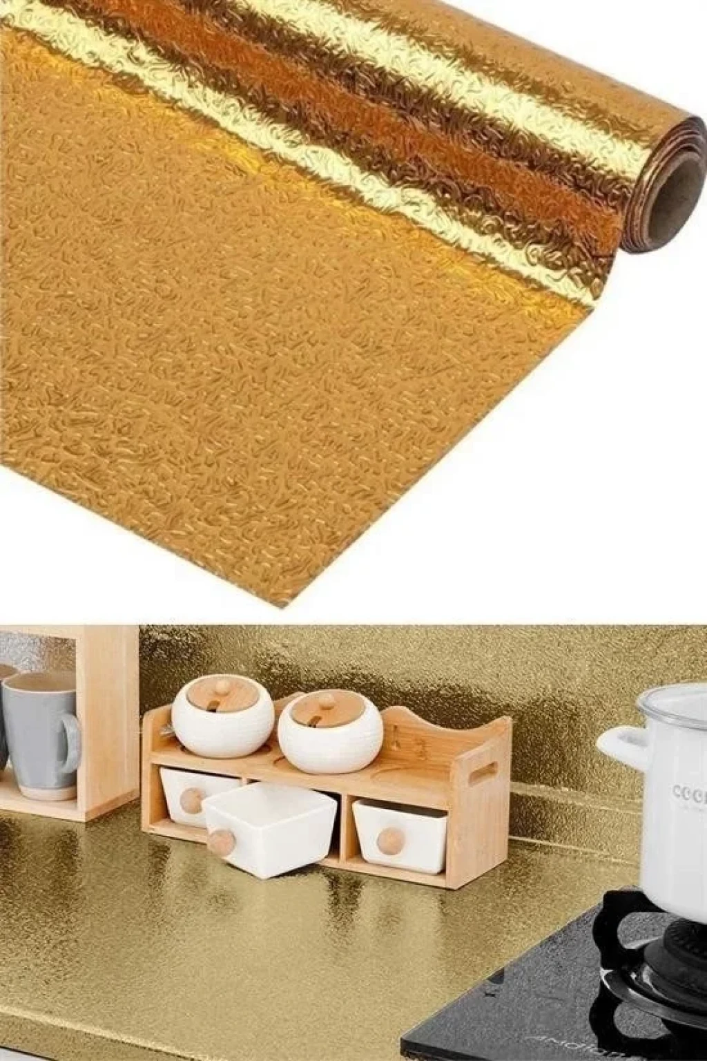 Egonex 2 Metre Kendinden Yapışkanlı Silinebilir Mutfak Tezgah Üstü Sticker Folyo Gold Renk