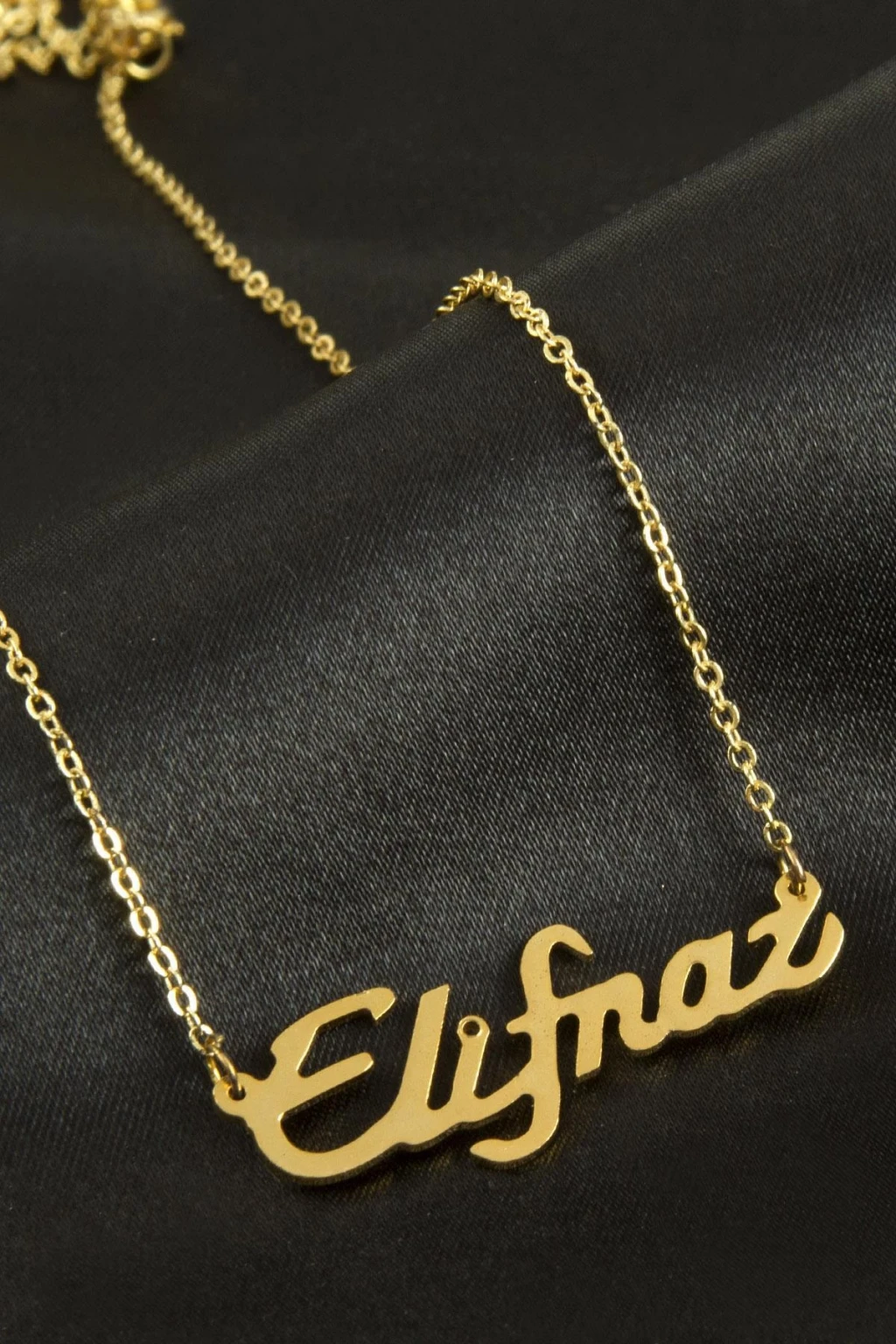 Elifnaz isimli kolye. İsimli kolye pirinç madeninden ve altın kaplamalıdır. Kişiye özel üretilmektedir.Yazdırmak istediğiniz ismi bize mesaj olarak iletmeniz gerekmektedir. Kullanıma bağlı olarak uzun süre kullanıma uygundur. Ürün malzemesi 1.sınıf kalitededir. Ürün ve zinciri sarı renktedir. Ürün zincir boyu 45 cm ve ürün üzerindeki isimler yaklaşık 3 cmdir. İsim boyları ürün ismine göre degişiklik göstermektedir.