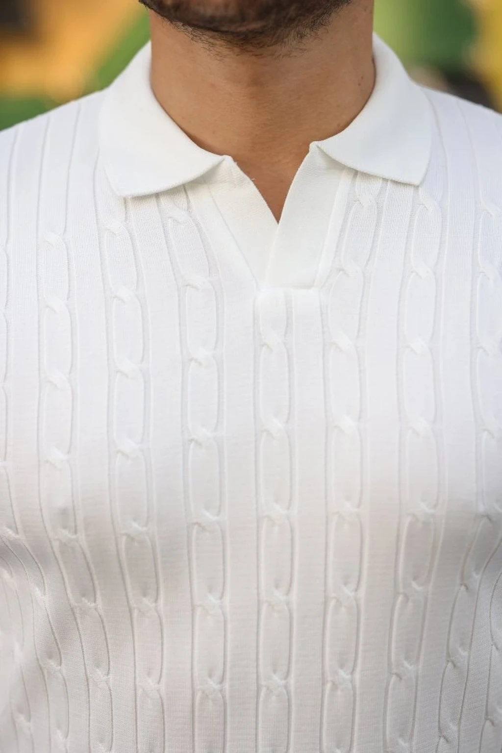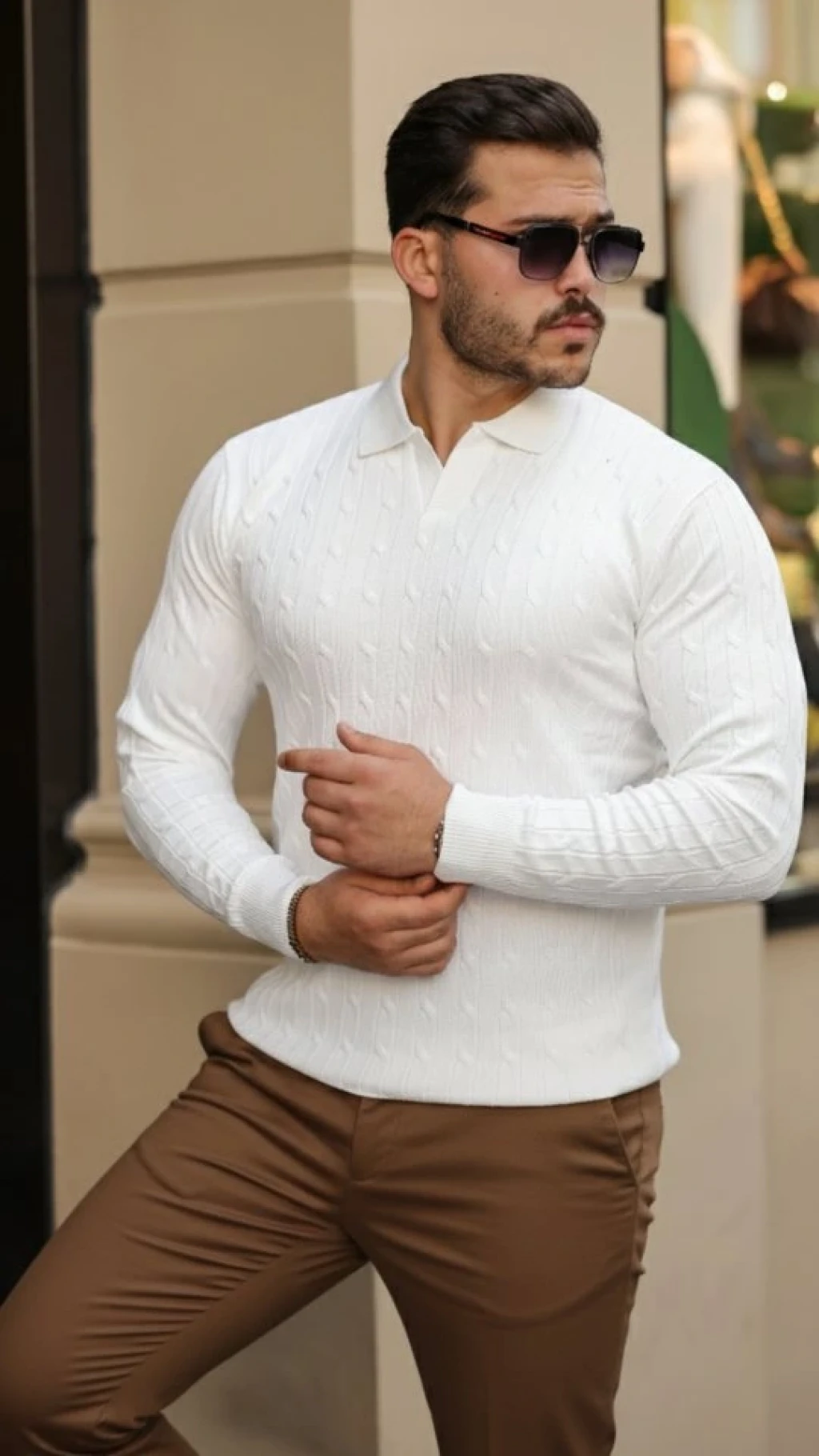 Erkek Pirinç Desenli Uzun Kollu Yakalı Triko
