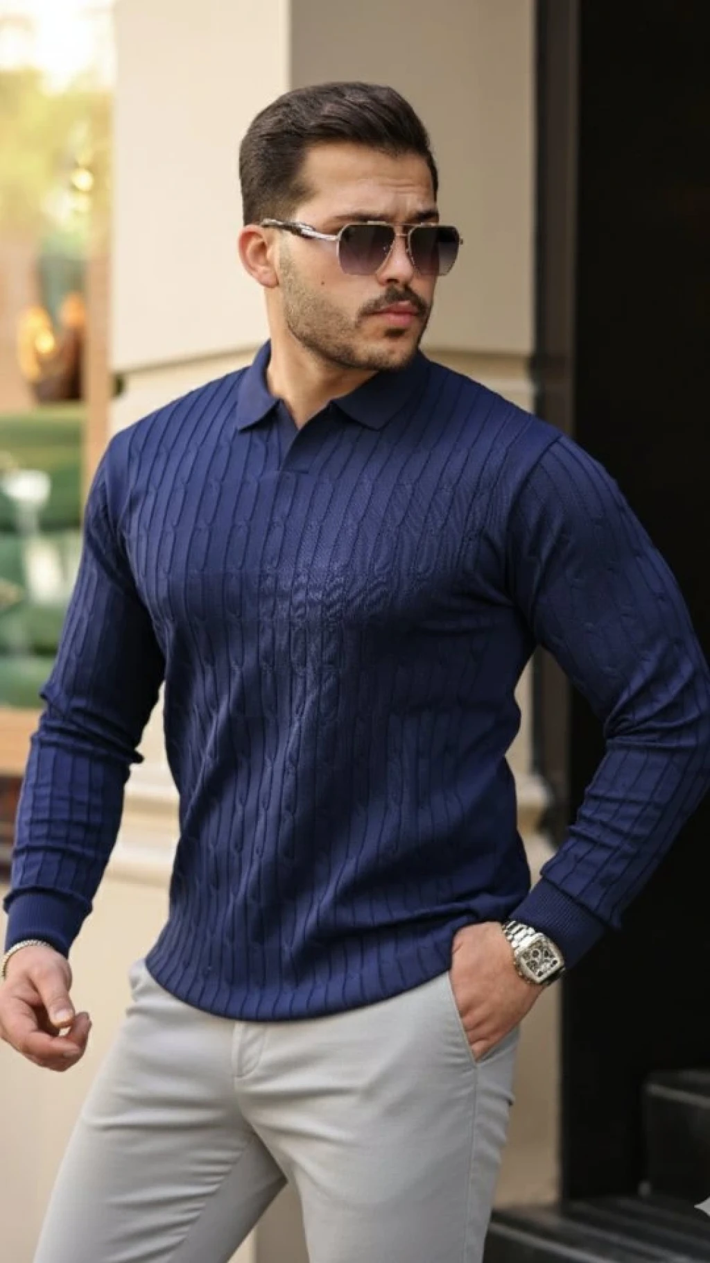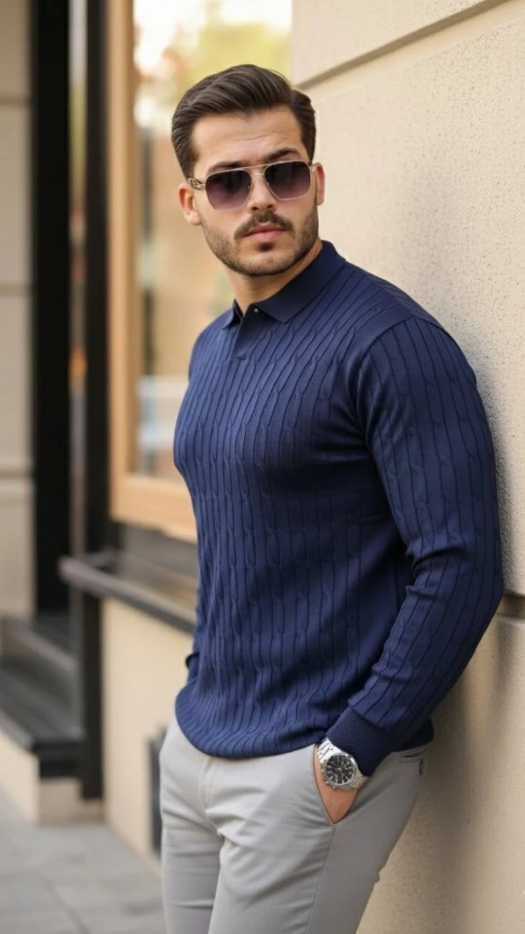 Erkek Pirinç Desenli Uzun Kollu Yakalı Triko
