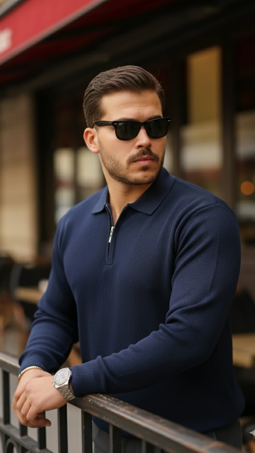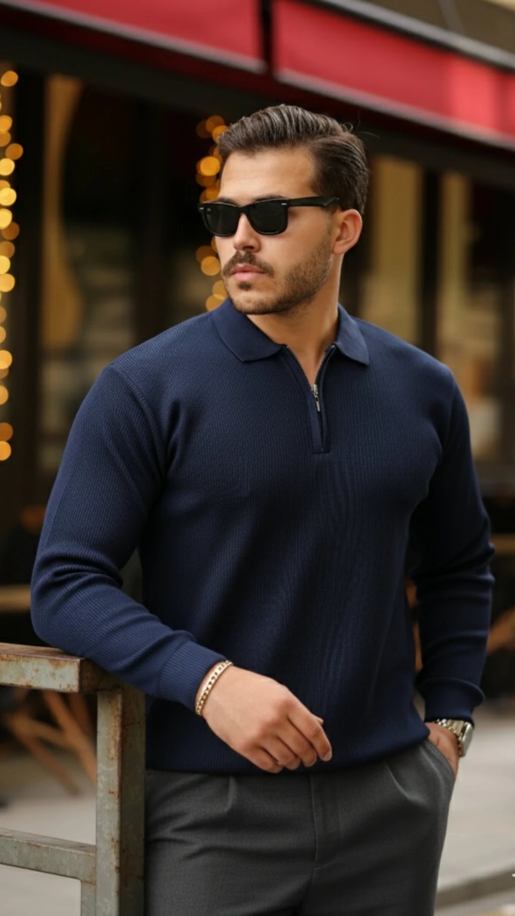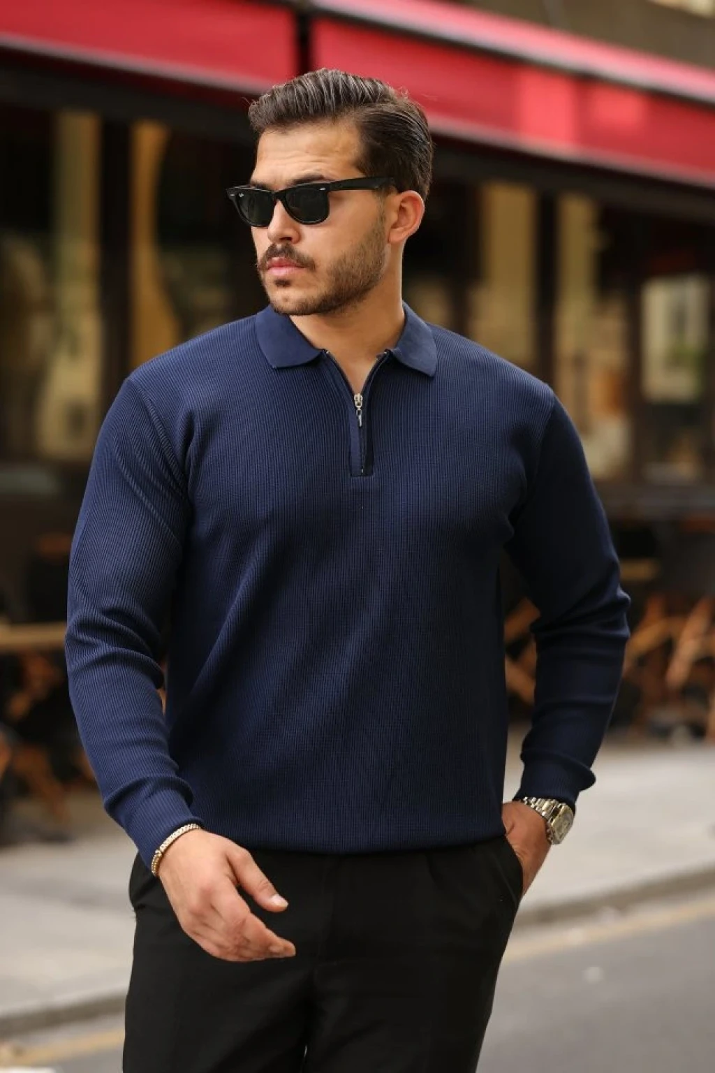 Erkek Fermuarlı Bisiklet Yaka Dokulu Uzun Kollu Triko