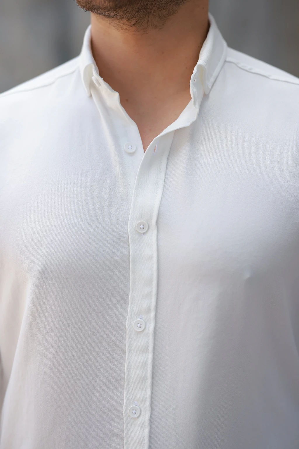 İki İplik Kumaş Baskılı Gömlek - Beyaz